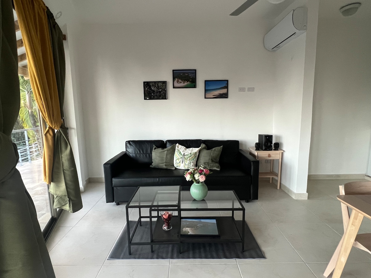 Izbaudiet neticamu skatu uz jūru un kūrortu no sava balkona! Šis skaistais dzīvoklis ir aprīkots ar 2 60 collu viedajiem televizoriem, Wi-Fi, 3 Alexa ierīcēm jūsu ērtībai un elektronisko slēdzeni. Šis daudzdzīvokļu nams atrodas viesnīcā Hacienda Samana Bay, kur jums ir piekļuve tās baseiniem, bāriem un restorāniem! Ar Playa Cayacoa 5 minūšu brauciena attālumā, šis daudzdzīvokļu nams ir sapņu piepildījums!