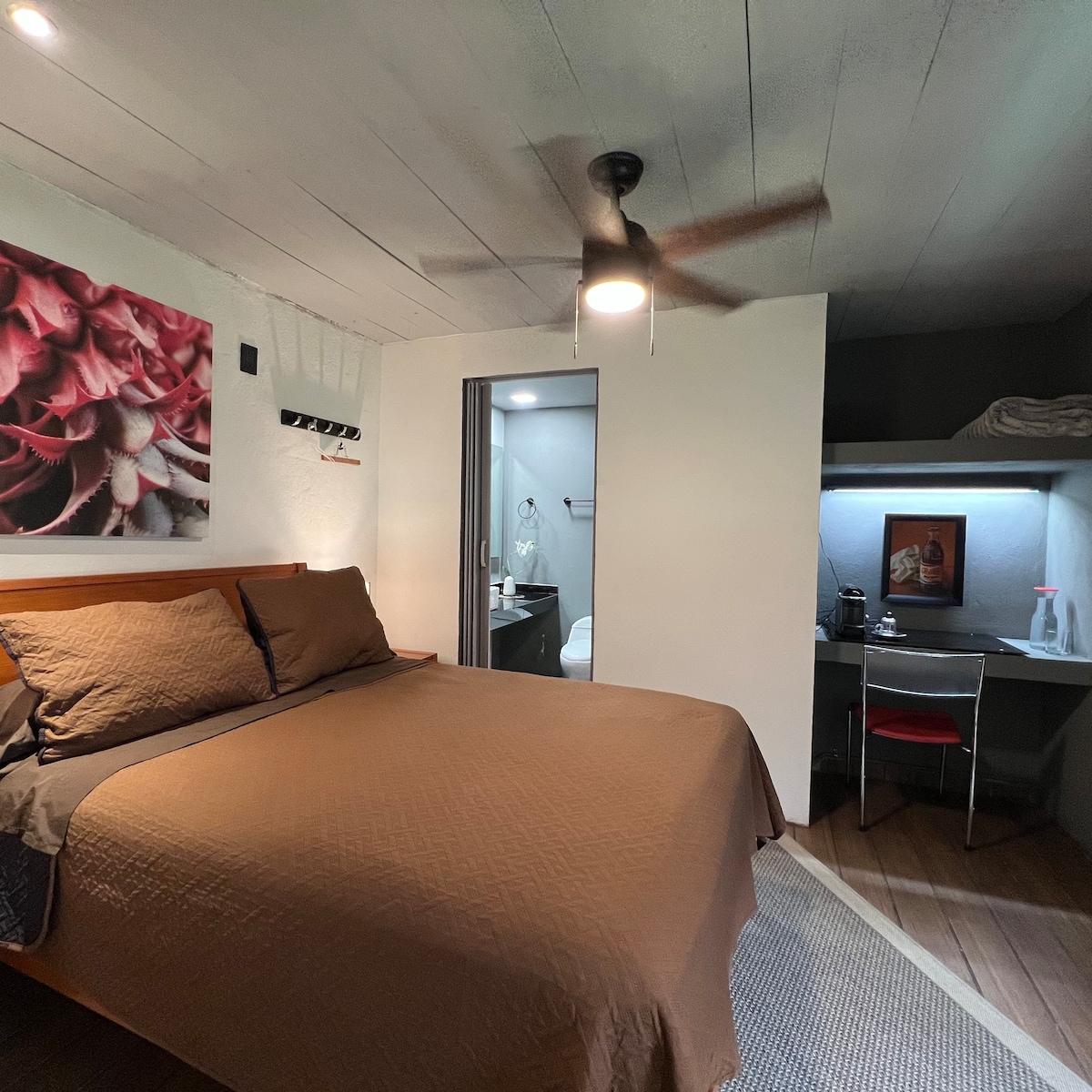 Atpūtieties un atpūtieties šajā mājīgajā privātajā loftā Keretaro! Šī telpa ir paredzēta, lai jūs varētu baudīt komfortu, atpūtu un pilnīgu privātumu. Ar modernu dizainu un lielu dabisko apgaismojumu tas ir ideāli piemērots mierīgam un stilīgam mājoklim. Atrodas drošas slēgtas kopienas augšstāvā ar novērošanas un apsardzes darbiniekiem, tikai 15 minūšu attālumā no vēsturiskā centra ar automašīnu. Viss mājoklis būs jūsu rīcībā!