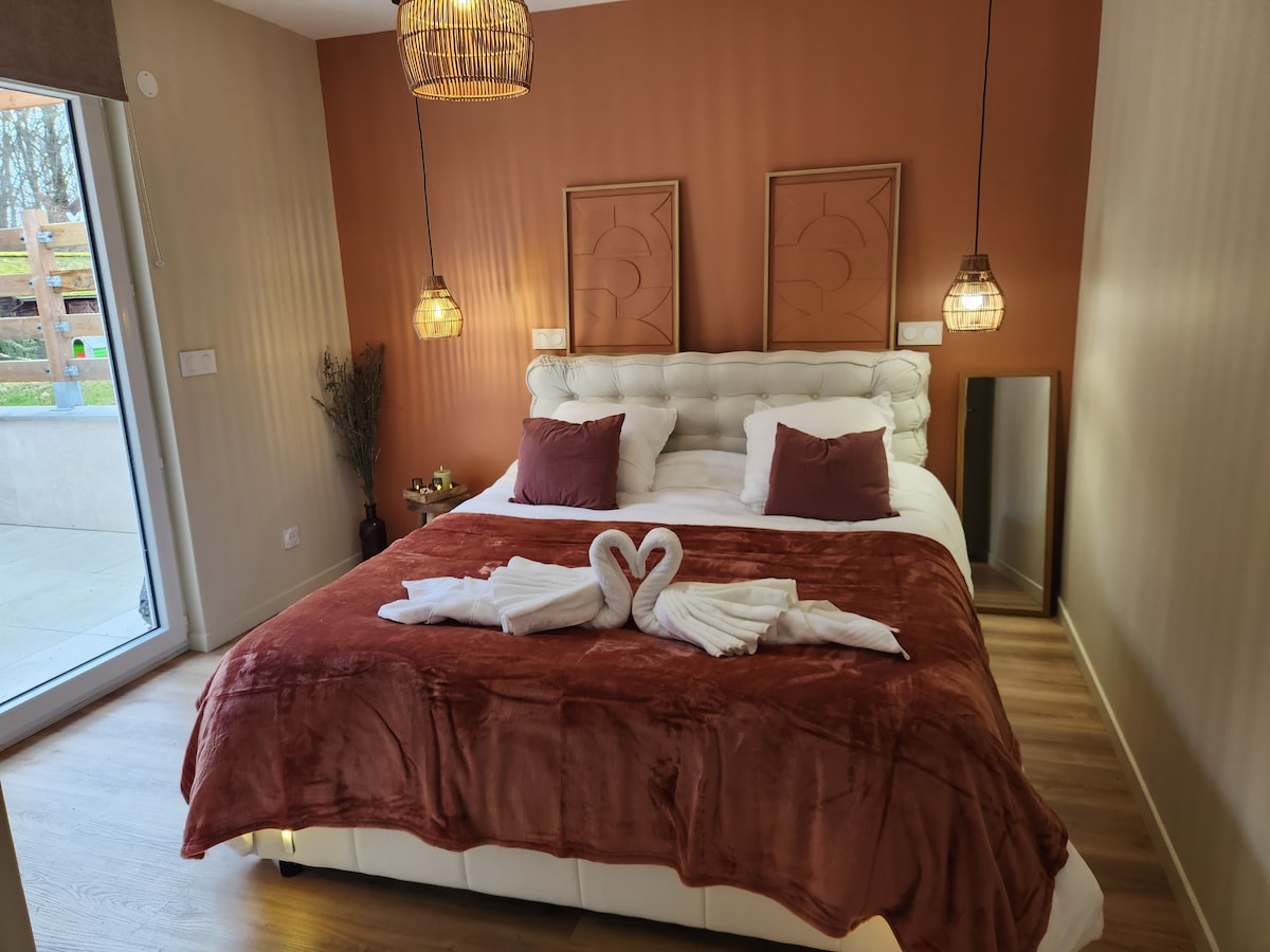 Izmitināšana 25 m2 platībā: guļamistaba, aprīkota virtuve, dušas telpa burgundiešu mājā. un blakus 10 m2 terase. Zaļajā 10 minūšu attālumā no A19 un Sens centra 7 minūšu attālumā no dzelzceļa stacijas. Tuvu autobusu pieturas stacijai, virziens, Auchan apgabals, Gron. Divas vienguļamās gultas. Dvieļi un tualetes piederumi. Ideāli piemērots darījumu ceļotājiem vai pāriem, kas dodas pastaigā! Piekļuve pa kāpnēm, pastaigu un terasi, kas atrodas dienvidos aiz mājas. Īpašumā novietots transportlīdzeklis.