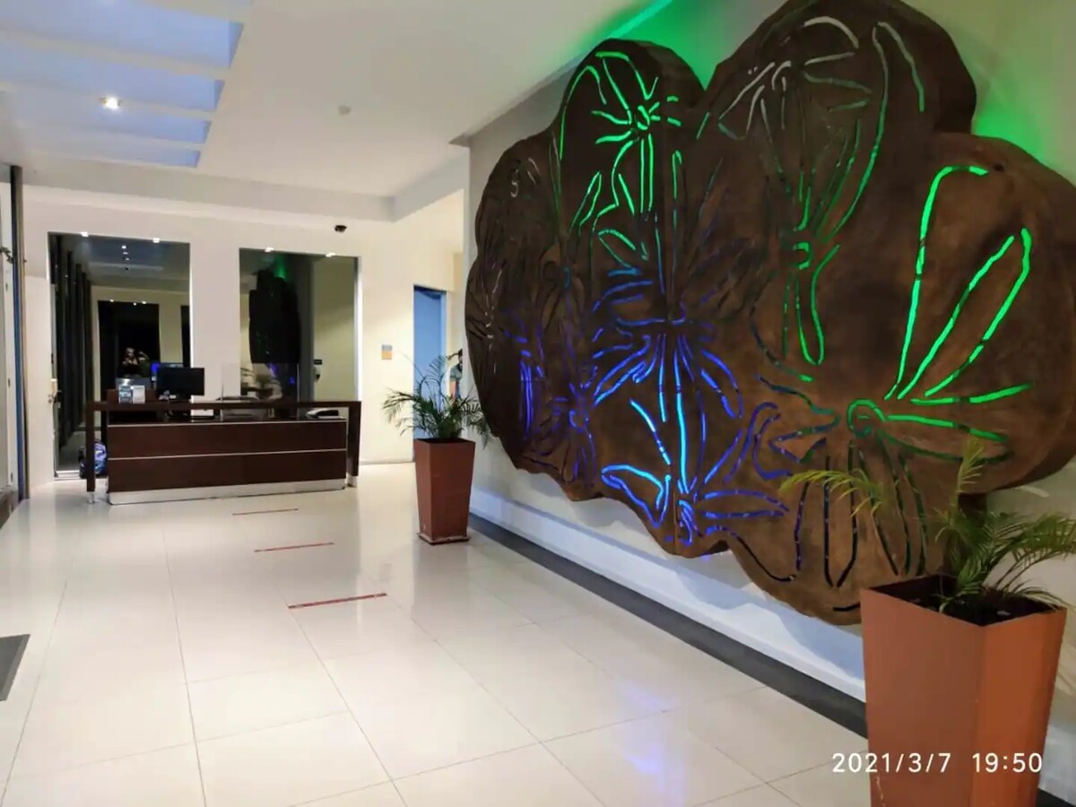 Gaišs dzīvoklis ar ērtu balkonu modernā 25 stāvu ēkā ar diennakts apsardzi. Pārvalda tās īpašnieks. Tā nav atsevišķa viesnīca. Augstas kvalitātes informācija. Klusums, neskatoties uz tā centrālo atrašanās vietu. Aprīkots ar pirmās paaudzes ierīcēm. Ērta gulta ar augstas kvalitātes matraci, spilveniem un gultasveļu. Nepārspējama pilsētas centra atrašanās vieta. Bloks no vēsturiskā centra, finanšu zonas un tirdzniecības centriem. 15 minūšu attālumā no lidostas.