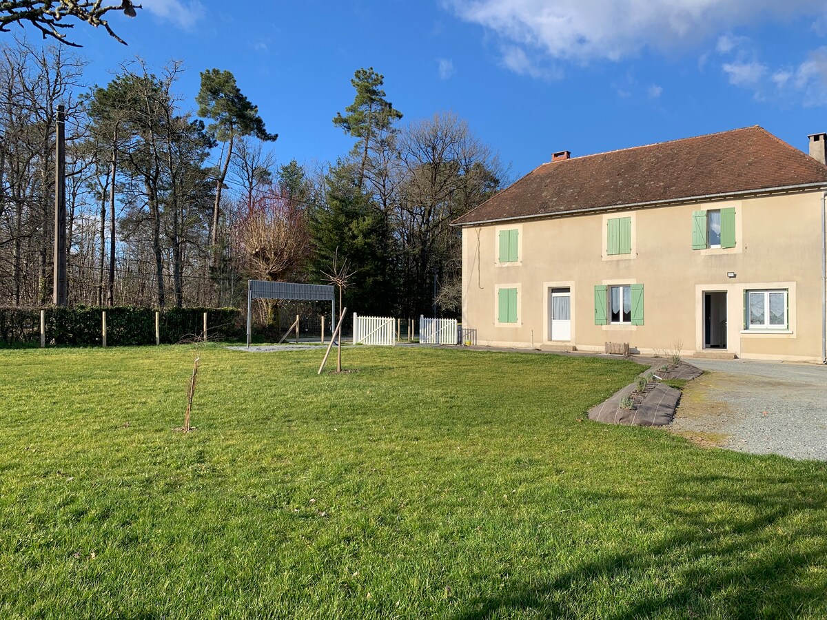 Nāciet un atpūtieties šajā mierīgajā mazajā Périgord Vert stūrītī, kur mijas komforts, daba, miers un bauda! Jūs būsiet pilnīgi neatkarīgs, pateicoties ieejai caur jūsu lielā galvenā apartamenta logu, putnu dziesmām un skaistam skatam 💚 Aprīkots ar atsevišķu tualeti, plašu vannasistabu un lielu guļamistabu ar 160/200 gultu ar ledusskapi, mikroviļņu krāsni. Vakariņu( 19 eiro no personas) un brokastu iespēja (8 eiro no personas) par papildu samaksu