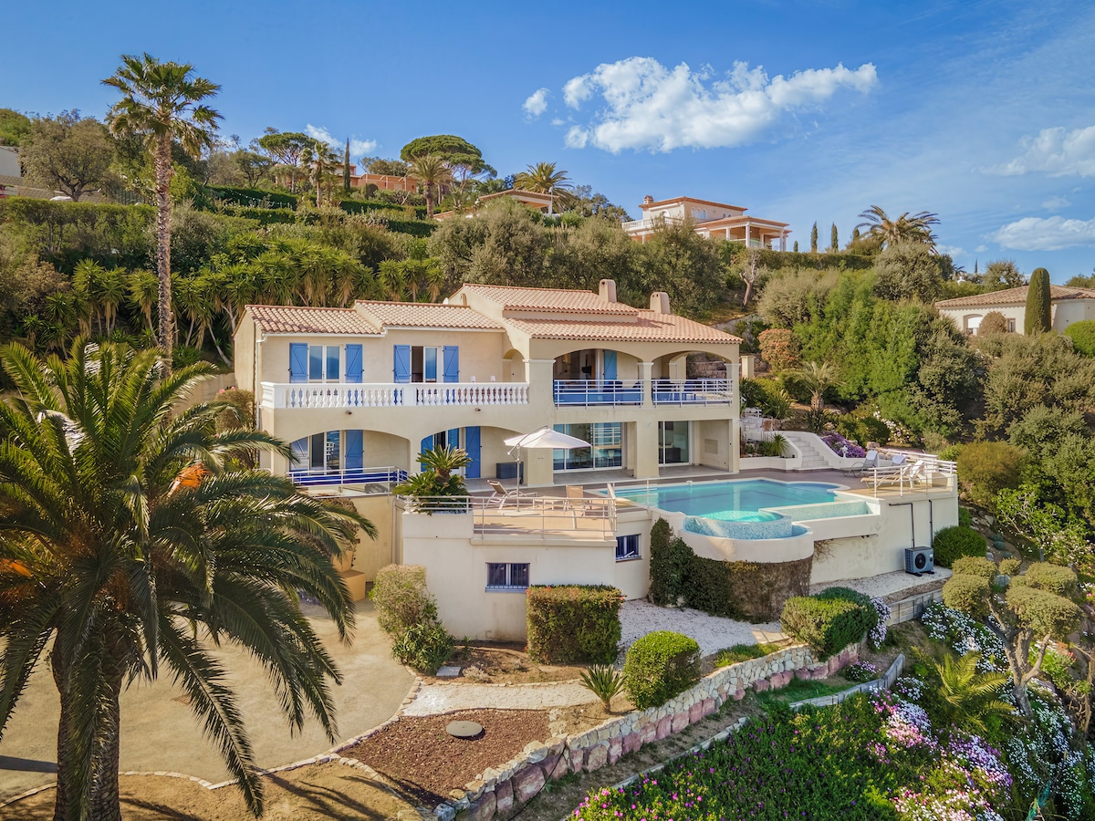 Satriecoša bohēmiska vienstāva villa ar bezgalības baseinu (apsildāms no aprīļa līdz oktobrim), kas atrodas Les Issambres. No tā paveras elpu aizraujošs 180° skats uz Saint-Raphaël līci, Estérel masīvu un Alpiem-Maritimes. Atrodas ļoti klusā apkaimē, tikai 10 minūšu pastaigas attālumā no viena no skaistākajiem līčiem Les Issambres: La Calanque Bonne Eau