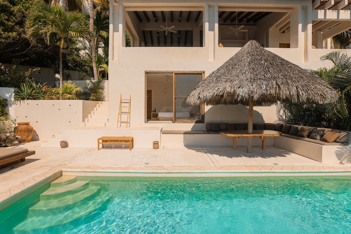 Lieliski skati tropu ainavā, no kuras paveras skats uz Kluso okeānu un Tangalondas līci. Ērtas āra dzīvojamās telpas ar visām papildērtībām. Pilnībā aprīkota virtuve, AC, Wi-Fi un baseins. Ēdamistabas un dzīvojamās telpas brīvā dabā, virtuvi un guļamistabas var slēgt. Tieša piekļuve slēptai nošķirtai pludmalei. Privāta autostāvvieta, diennakts apsardze. Tikai desmit minūšu brauciena attālumā no Centro Crucecita. Villā guļ 8 cilvēki. Cenas sākas ar 2 personām, cenas tiks pielāgotas atkarībā no aizņemtības.