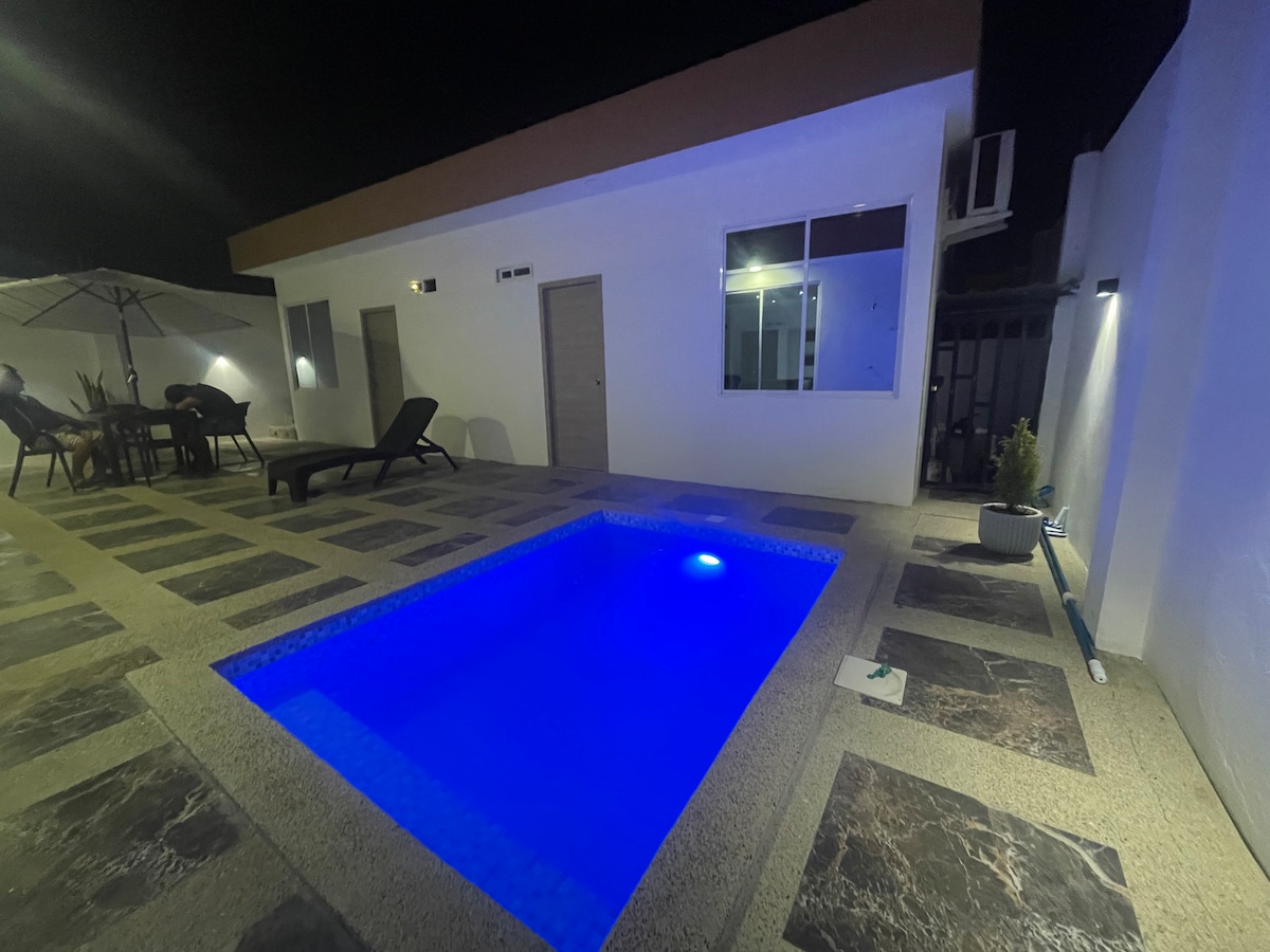 Jauns mājoklis okeāna piekrastē labākajā Manabi pludmalē ar mājsaimniecības pakalpojumiem šajā ģimenes mājoklī rada unikālus suvenīrus. Jūs izbaudīsiet skaistākos saulrietus unikālā ainavā, klausoties jūras viļņos. Visas istabas ir vērstas uz jūru , viesistaba ar televizoru un ēdamistaba mājā,virtuve , veļas mazgātava, Wi-Fi. Āra sociālā zona ar baseinu un burbuļvannu ; lapene ar ēdamistabu 16 personām, istaba, bārs un grila zona ar grilu un virtuvi. Kontamos ar ELEKTRISKO ĢENERATORU