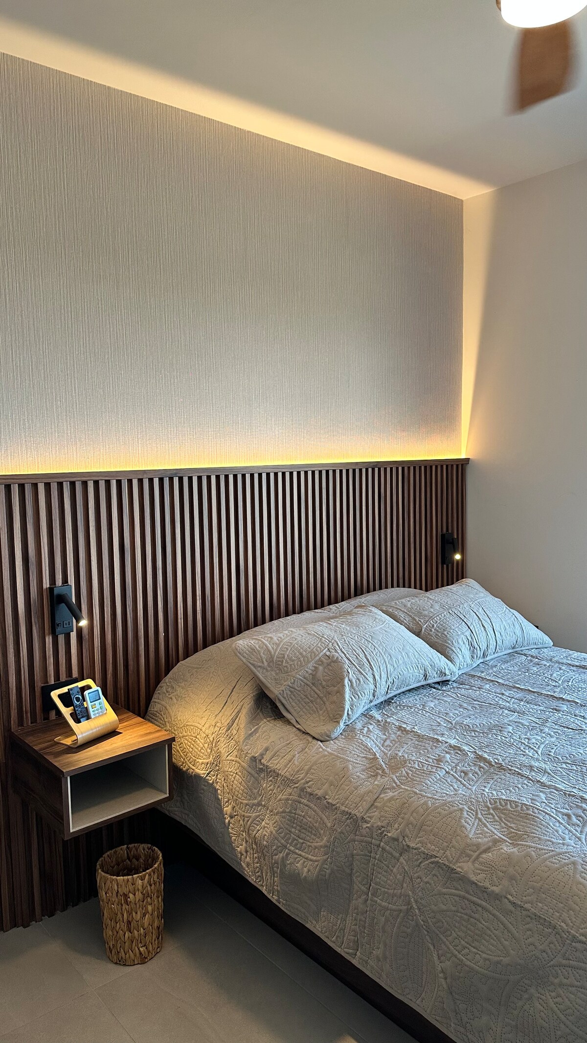 This apartment has a bedroom with 2 queen size beds and full bathroom, fully equipped kitchen, dining room and double sofa bed. The entire space is air-conditioned and equipped with Wi-Fi and Netflix for your comfort. It is located in front of the pool, which has a slide and splash pad, and a few steps from the terrace, perfect for preparing a roast meat or barbecue and enjoying spectacular afternoons and nights. Privileged location:2min. Walked to beach and boardwalk. 5min. Of squares