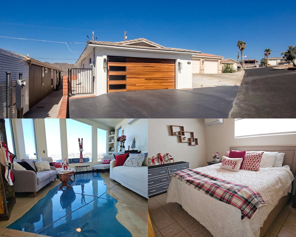 Īpaši AUKSTAS gaisa kondicionēšanas iekārtas katrā telpā! ❄️ Laipni lūdzam savā privātajā oāzē Pārkerā! No šī satriecošā mājokļa paveras elpu aizraujošs skats uz upi un Kāslroku. Ar privātu laivu rampu jūs varat viegli palaist savu peldlīdzekli un izpētīt Kolorādo upi. Šis mājoklis atrodas starp Havasu un Pārkeru, nodrošinot ērtu piekļuvi abām pilsētām un visām aktivitātēm, ko tās piedāvā. Terase ārpus telpām ir ideāla vieta, kur atpūsties, baudot satriecošus skatus uz upi un episkos saulrietus!