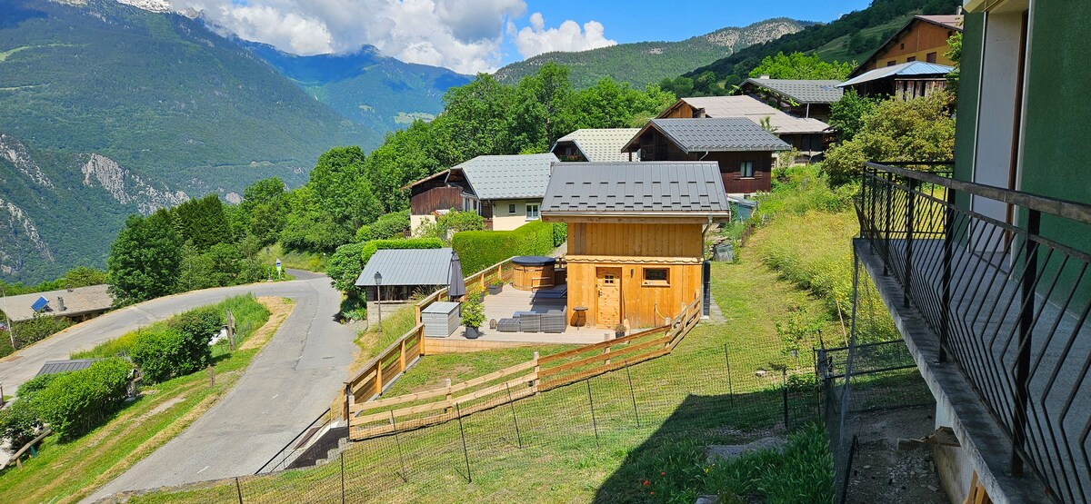 Jums patiks šis unikālais un romantiskais ceļojums pašā Savijas sirdī, Tarentaise. Šis lieliskais neatkarīgais lieliskais kalnu namiņš 48 m2 platībā divos stāvos. Pirmajā stāvā ir iebūvēta virtuve un TV atpūtas telpa. Augšā atradīsiet guļamistabu, dušas telpu un tualeti. Liela terase, kur varat atpūsties, paveras elpu aizraujošs skats uz kalnu. Jums patiks Zen puse ar apsildāmu ziemeļu vannu un pirti.