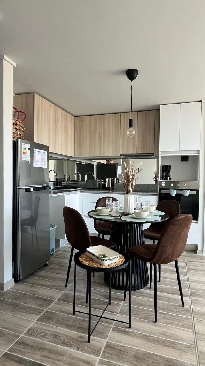 Izbaudiet lielisku atrašanās vietu viena kvartāla attālumā no pludmales un pakāpienu attālumā no Enjoy kazino. Netālu no restorāniem, kafejnīcām un bāriem, kas atrodas La Serēnas krastā. Daudzdzīvokļu namu ieskauj zaļās zonas, un tajā ir peldbaseins, grilēšanas zona, autostāvvieta, lifts un diennakts konsjeržs. Dzīvoklis ir pilnībā aprīkots, tajā ir 2 guļamistabas – vienā ir divguļamā gulta, bet otra ir piemērota kā darba vieta ar rakstāmgaldu. Komplektā ietilpst gultas veļa un dvieļi. Viedtelevīzija un Wi-Fi.