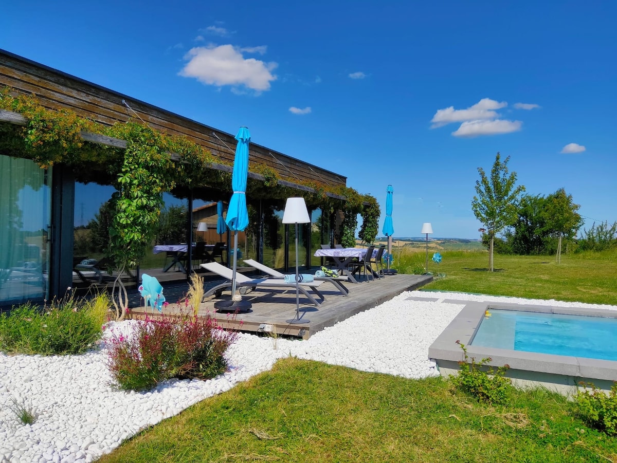 Venez vous détendre dans cette maison atypique, toute vitrée pour profiter de la vue exceptionnelle et dotée d'un sauna extérieur pour que votre bien être soit total. Le logement est en pleine campagne à 1h de Toulouse et à 1h d'Auch. Vous pourrez apprécier la vue dominante sur les paysages vallonnés typiques de la région. Le soir le ciel étoilé est magnifique. Parfait pour un week-end au calme en amoureux ou en famille.
