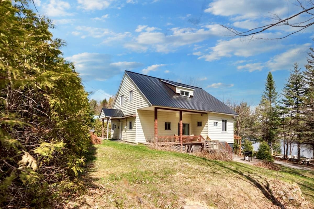 Kalnu namiņš ar izcilu panorāmas skatu 1 stundas 15 minūšu attālumā no Monreālas. Privāta tieša piekļuve upei peldēšanai, iekštelpu un āra kamīns, bbq, terase, šūpoles un daudz kas cits! Daudzas aktivitātes tuvumā (spa, koks, slēpošana, braukšana ar sniega kurpēm, pārgājieni, riteņbraukšana utt.). Ideāli piemērots arī attālinātam darbam ar ātru Wi-Fi (optisko šķiedru). Īpašuma numurs: 227290