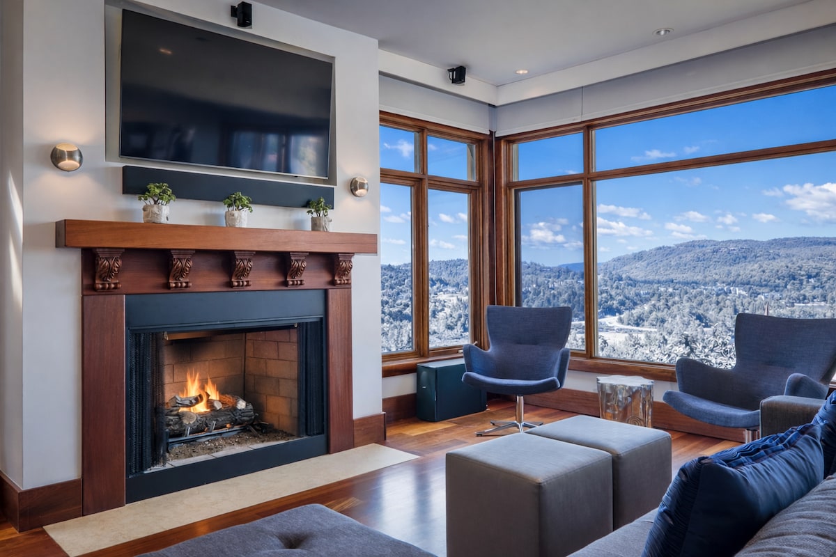 Tremblant – skats uz kalniem, kamīns, minūšu attālumā no kalna