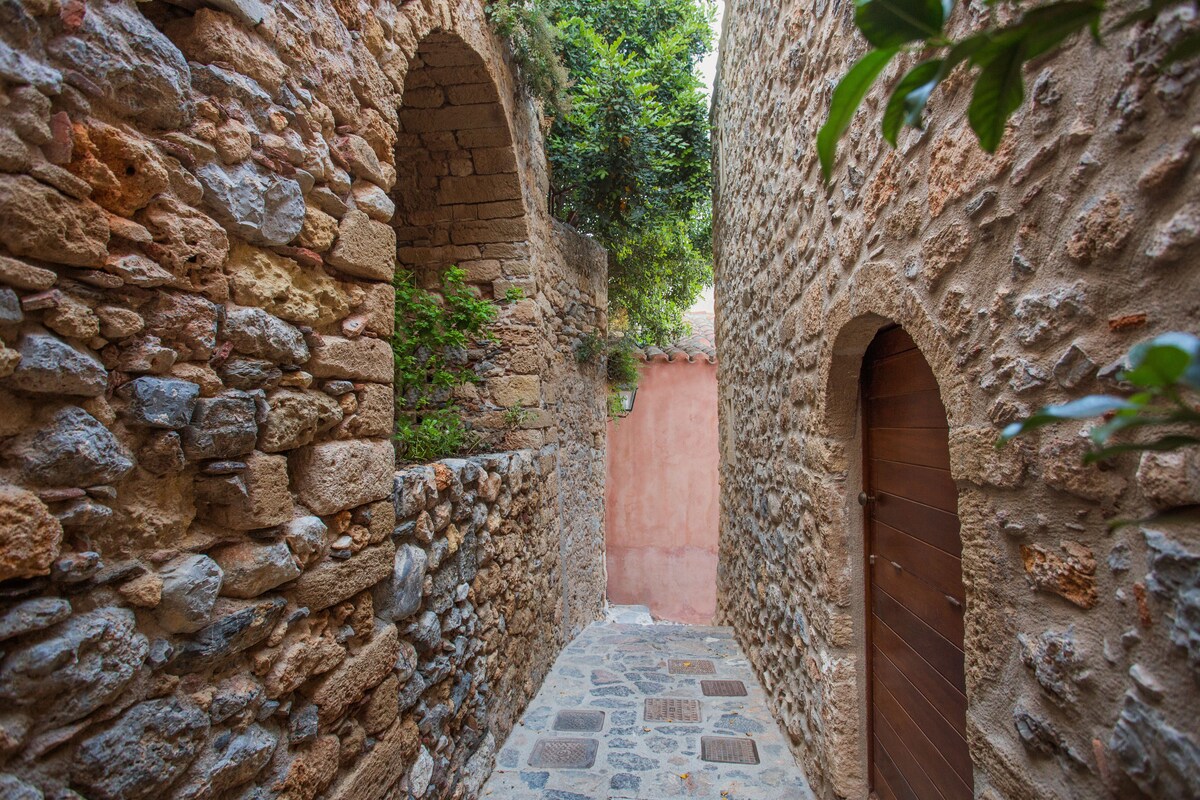 Tradicionāli būvētais "Kalnterimi Suite" numurs atrodas Monemvasia viduslaiku pilī, no kura paveras skats uz Mireto jūru. Tā piedāvā numurus ar gaisa kondicionētāju un logiem ar skatu uz jūru. Viesi savās istabās var pagatavot kafiju un tēju. Veikali, restorāni un bāri atrodas īsas pastaigas attālumā no īpašuma.