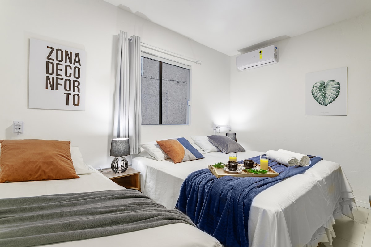 Klusa, labi vēdināma un ērta studija, kas ir ideāli piemērota darba mājas birojam, KARSTĀ /aukstā gaisa kondicionēšanai, pastaigām un atrašanai Floripas centrālajā reģionā, ceļā uz labākajām pludmalēm. Biroja galds un krēsls, virtuve, vannasistaba. Ir arī citas kopīgas telpas jogas praksei (Casa Aflorar telpa), privileģēts skats uz Beiramar un reģionu, ko ieskauj vietējā veģetācija, dārzi. Šķiedru internets, gaisa fritieris, aptumšojoši aizkari. Kultūrisms tuvumā,veloceliņi.