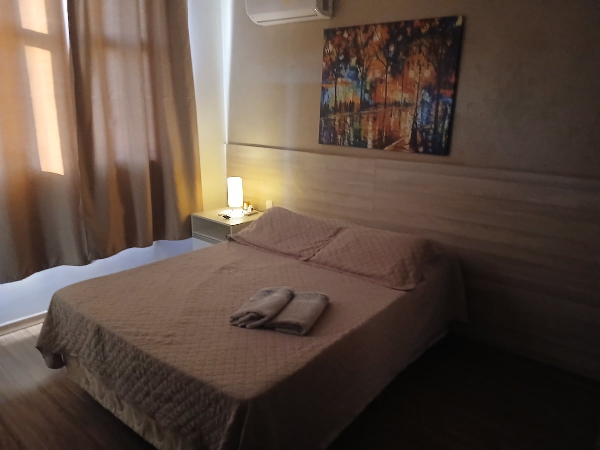 Studio aconchegante e completo! Equipado com tudo necessário para estadias curtas/longas em ótima localizacao. Com elevador e vaga coberta demarcada/livre. Equipado com cama de casal, sofá-cama, geladeira, Smart tv de 50 polegadas, ventiladores de teto, cooktop, forno elétrico, forno micro-ondas, liquidificador, utensílios de cozinha, máquina lava e seca Midea 10 kg, ferro e tábua de passar roupa e secador de cabelo. *Internet 500 mega *Ideal 2 pessoas