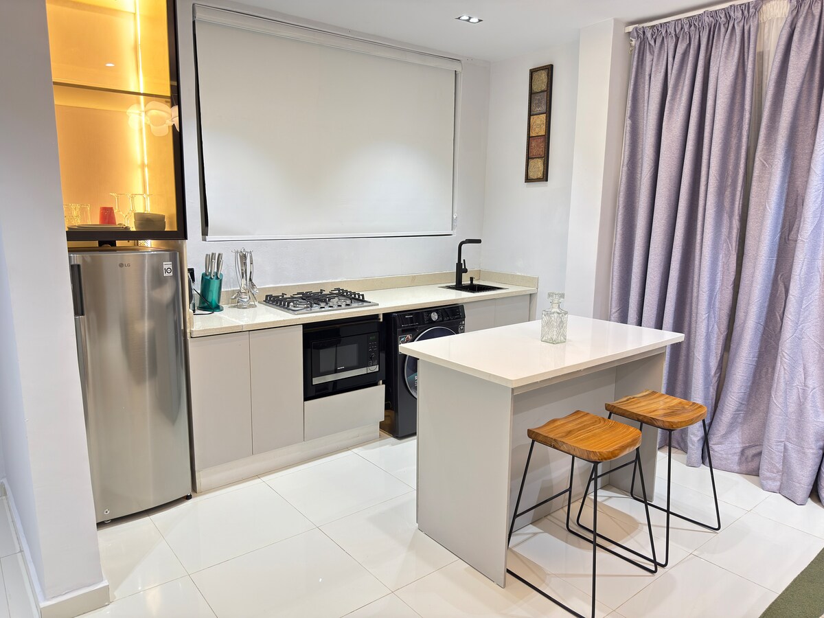Izbaudiet lielisku piedzīvojumu centrā esošā stilīgā diennakts dzīvoklī ar elektrību un Wi-Fi, kurā ir tirdzniecības centri, kinoteātris, restorāni un lieliska naktsdzīve 10 minūšu brauciena attālumā. Abas guļamistabas ir aprīkotas ar atsevišķu televizoru. Tajā ir arī lieliska darba vieta ar 27collu darbvirsmas monitoru, ergonomisku krēslu un elektrisko galdu, ko varat iestatīt jebkurā augstumā, kamēr strādājat. Ideāli piemērots jūsu atvaļinājumam un attālinātam ilgākam ceļojumam. #YourplaceinLagos