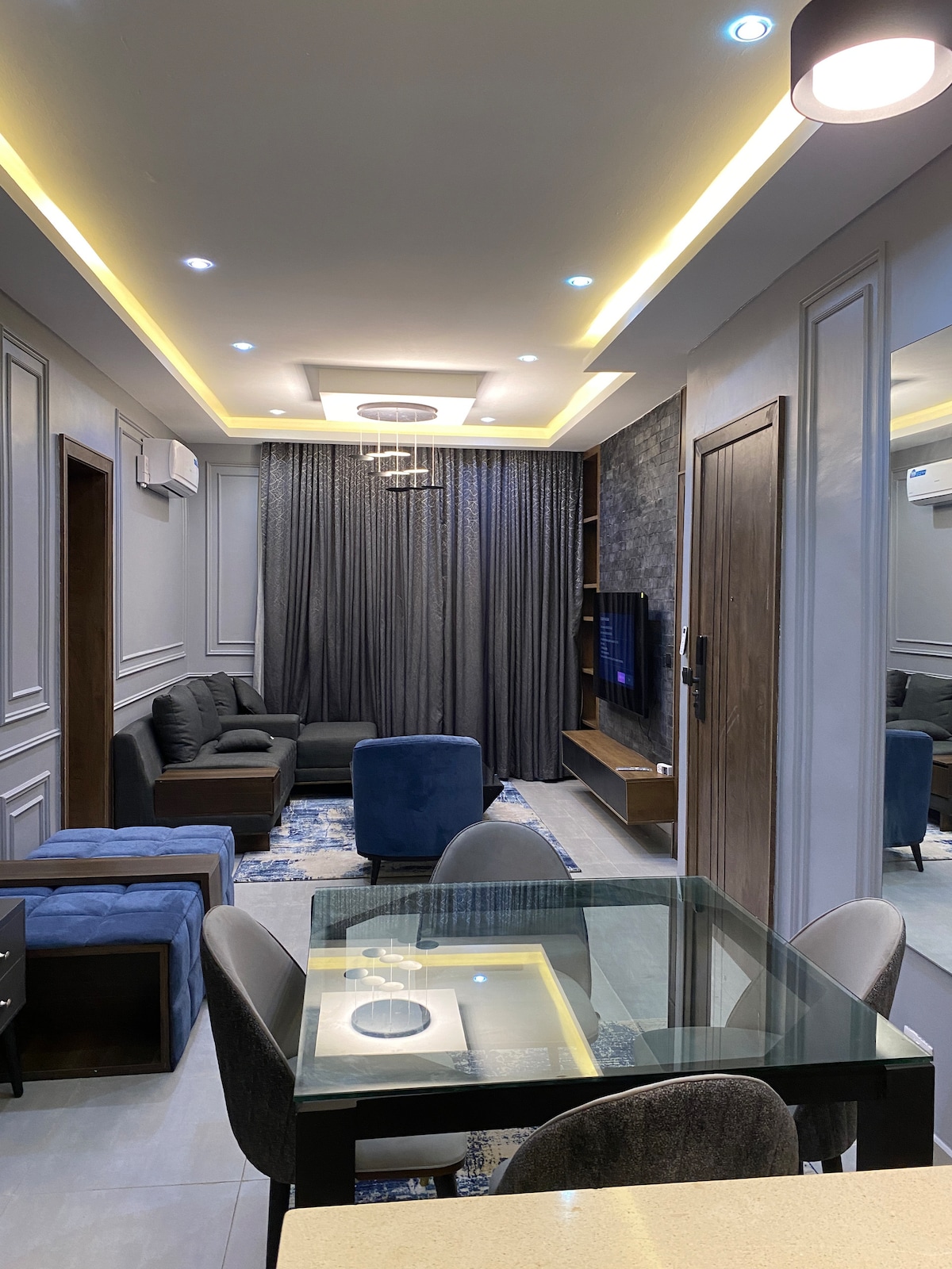 Apburošs industriāls raksturs un augstākās kvalitātes mājīgs komforts. Nesteidzīga pastaiga no iepirkšanās, ēdināšanas un naktsdzīves Admiralty Way, Lekki 1. posmā. Atpūtieties baseinā vai baudiet filmas satelītā, Netflix vai Amazon. Īpaši ātrs optiskās šķiedras Wi-Fi. Nepārtraukta ģeneratora rezerves barošana diennakts maiņstrāvas komfortam. Kluss dzīvoklis. Nav piemērots pulcēšanās reizēm. Stingri aizliegts smēķēt. Lūdzu, nerezervējiet šo dzīvokli, ja kāds no plānotajiem viesiem ir smēķētājs.