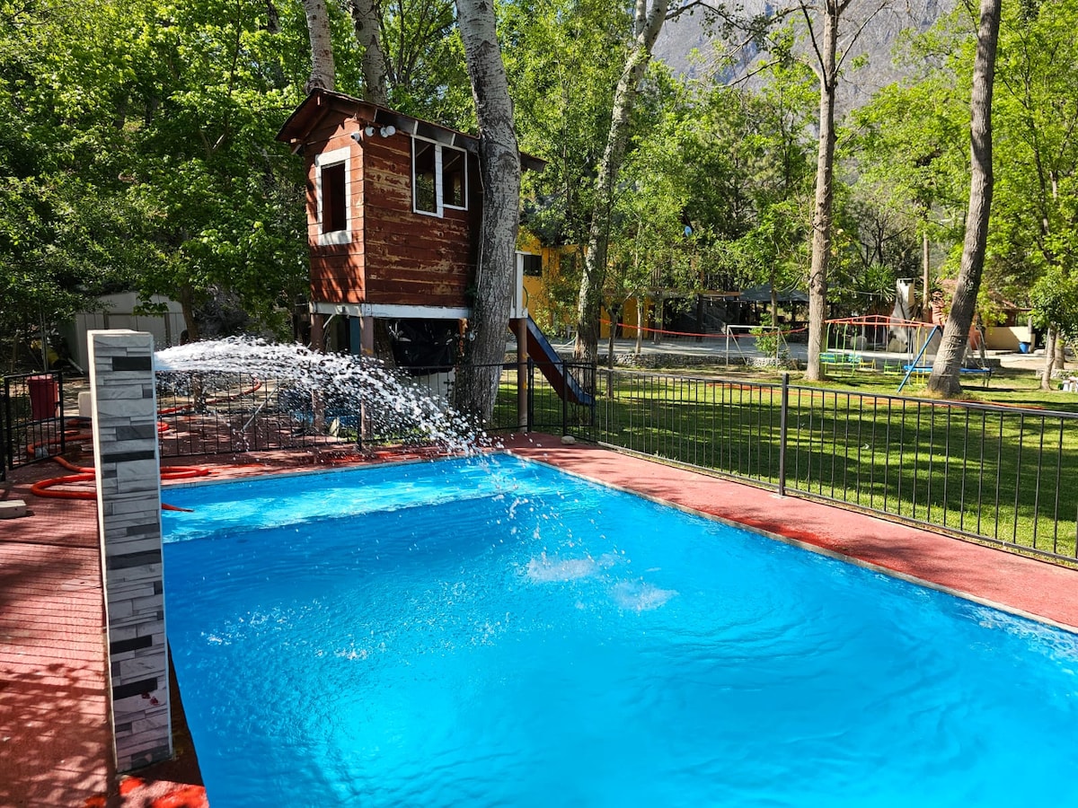 Un encantador oasis de tranquilidad rodeado de naturaleza, a solo treinta minutos de Monterrey. Acogedora y pensada para regalarte momentos de paz, diversión y descanso. Perfecta para parejas, familias o grupos de hasta 8 personas. Con 🏊♂️ alberca 🪵 asador🌙 hamaca ✨ Vive la experiencia del campo con todas las comodidades que mereces. La mejor decisión 🌿¡Reserva hoy!