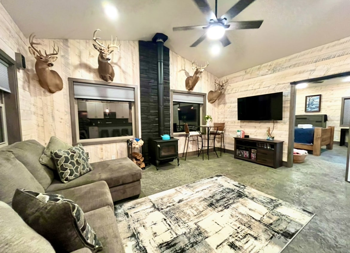 Atpūtieties un izklaidējieties šajā ģimenēm draudzīgajā namiņā. Atpūtieties masāžas krēslā, apsēdieties ap ugunskura vietu vai uz klāja šūpolēm, pusdienojiet pie piknika galda, noskatieties filmu vienā no četriem viedajiem televizoriem ar Disney+ Pilnībā aprīkota virtuve Atrodas blakus Three Bears Lodge un Jellystone parkam. Dienas caurlaides un golfa ratiņi nav iekļauti. ATV īre pieejama no Bear Bogging ATV 25 jūdzes līdz Wazee ezeram 3 jūdzes līdz McMullen apgabala parkam Mazāk nekā stundu līdz WI Dells 20 jūdzes Black River State Forest