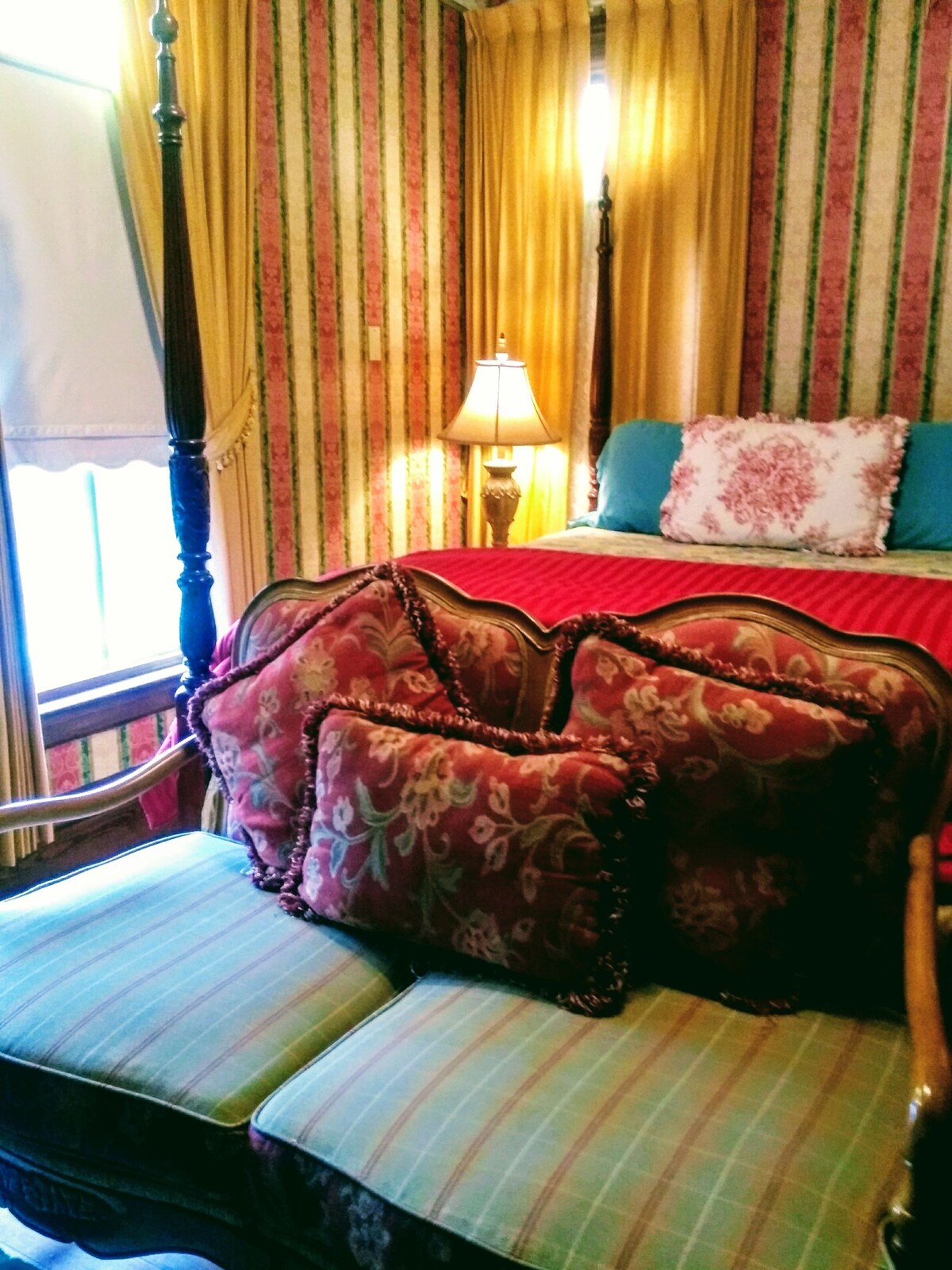 Šajā pielāgotajā marmora virpuļvannas numurā ir divguļamā arkveida marmora duša un augsta četru plakātu gulta - tālvadības kamīns - atpūtas zona un televizors. Brokastis tiek pasniegtas apakšstāva brokastu telpā plkst. 8:30-10:00. Vai arī ir pieejama brokastu kastīte (pasūtiet līdz plkst. 18:00 dienu iepriekš). Šajā telpā vai virpuļvannā nedrīkst atrasties sveces. Šis numurs nav piemērots maziem bērniem. Reģistrēšanās PLKST. 15:00 - izrakstīšanās līdz PLKST. 11:00.