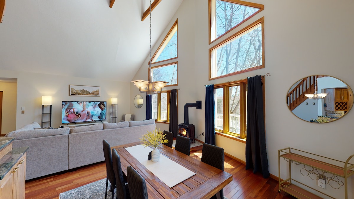 Atstājiet savas raizes šajā plašajā un burvīgajā 3 guļamistabu kalnu namiņā, kas atrodas pie mierīga ezera ar privātu āra burbuļvannu. Šī kalnu atpūtas vieta, kas atrodas tikai 6 jūdžu attālumā no Geilordas centra, ir ideāli piemērota izklaidei ģimenēm visa gada garumā. Pavadiet dienas, braucot ar kajakiem, peldoties, makšķerējot vai grilējot uz klāja, pēc tam atpūtieties piestātnē vai iemērciet burbuļvannā, saulei rietot virs ūdens. Neatkarīgi no tā, vai piedzīvojumi vasarā vai sniegoti ceļojumi, šis kalnu namiņš pie ezera ir ideāls ceļojums uz ziemeļiem.