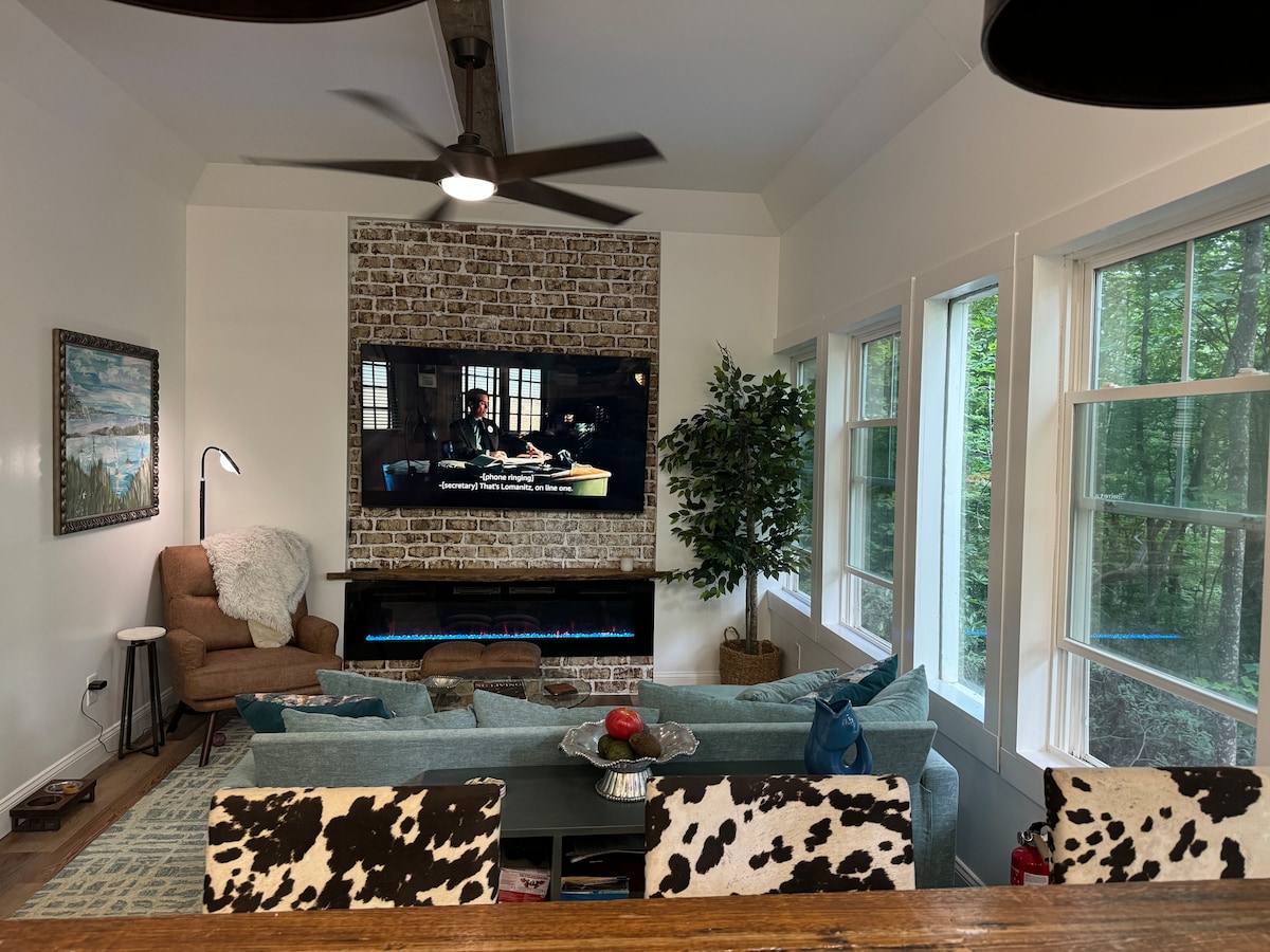 Romantisks, lauku namiņš 35 pēdu ūdenskrituma pamatnē, kas atrodas 16 akru platībā, ko ieskauj nacionālais mežs, kas stiepjas līdz pat Chattooga upei. Šis maģiskais ceļojums ļauj iepazīt tos, kuri meklē piedzīvojumu garu. Dodieties pārgājienā no namiņa uz papildu ūdenskritumiem, brauciet ar velosipēdu pa Turcijas Ridge Road līdz Opossum Creek takai un Piecu ūdenskritumu takai vai brauciet divas jūdzes līdz Chattooga Belle Farm. Ūdenskrituma namiņš ir prieks mums visiem, un mēs ceram, ka jums tas patīk tikpat ļoti kā mums. Bez uzkopšanas maksas.