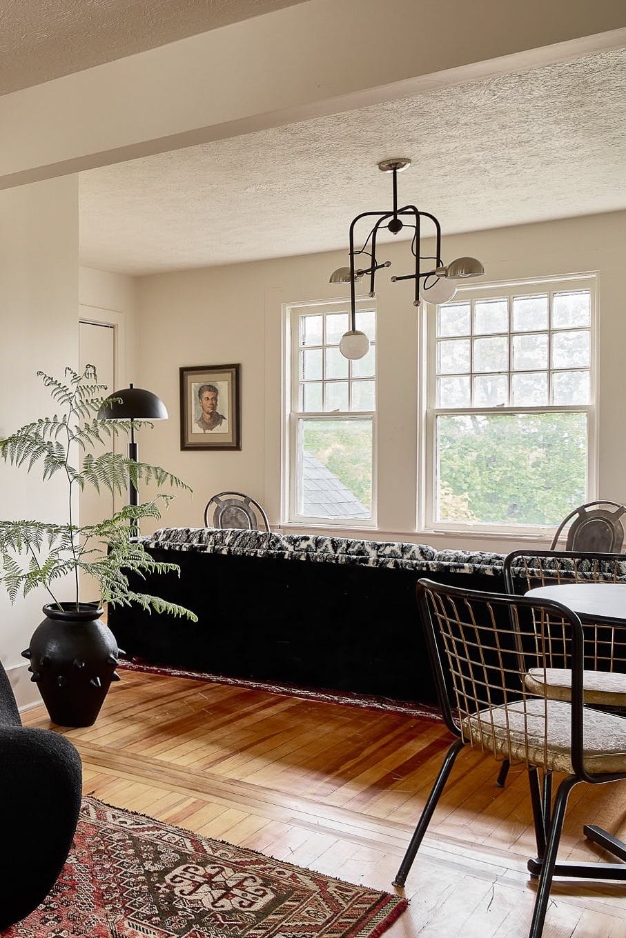 1936 Georgian-Revival, turned Coffee + Cocktail Bar, Housing NC's Smallest Boutique Hotel. This moody, color-drenched studio offers a private balcony with mountain views. Please note: the coffee/bar is open to the public and there is potential for noise. The bar closes at 9pm on weekdays and 10pm on Fri/Sat. Hotel is suggested adults only (21+)