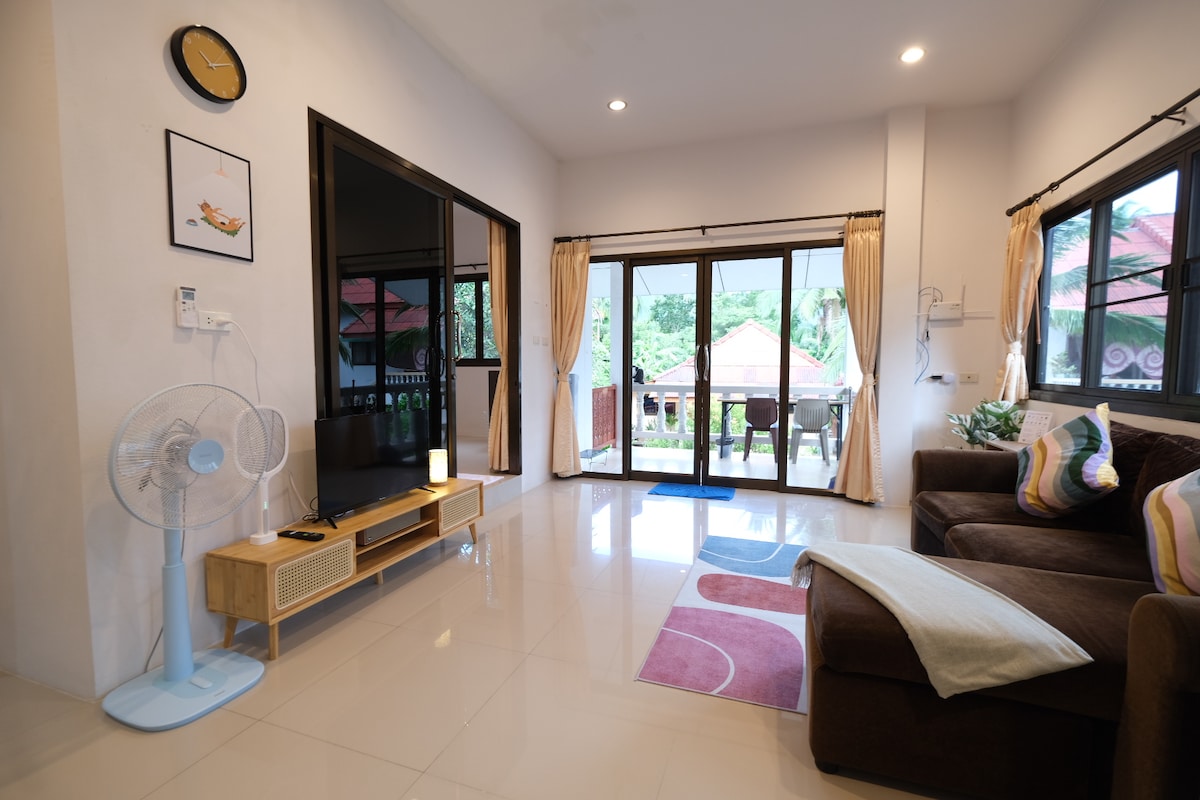 Laipni lūdzam mūsu burvīgajā taizemiešu mājā ar 2 guļamistabām un 2 vannasistabām, kas atrodas klusā Lamai apkaimē. Izbaudiet bohēmisku dzīvi ar ar rokām darinātām koka mēbelēm un unikāliem dekoriem. Izbaudiet mierīgo gaisotni un ērtas papildērtības, tostarp lielu privātu dārzu ar dažādiem augļu kokiem. Ideāli piemērots tiem, kas meklē mierīgu atpūtu ar ērtu piekļuvi vietējiem sasniegumiem. Padariet mūsu pazemīgo mājokli par savu mājokli prom no mājām un ļaujieties mierīgai un mākslinieciskai atmosfērai.