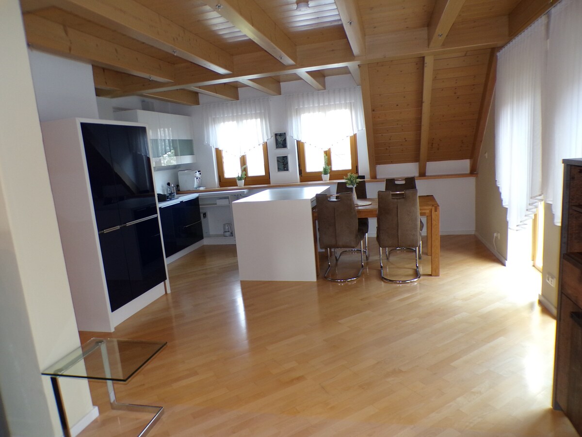 Kādreizējie bēniņi apburošā, vecā ēkā 2016. gadā tika uzbūvēti studijas tipa dzīvoklī, pievēršot uzmanību detaļām. Ir grūti atrast kaut ko, ko iegādāties. Pār nelielu jumta izeju var apskatīt Nirnbergas jumtus. Mājīgajā un unikālajā mājoklī varat vienkārši justies kā mājās un izbaudīt mieru. Centrāli izvietots, bet ļoti kluss, jūs varat nokļūt Nirnbergas centrā 10 minūšu laikā ar metro.