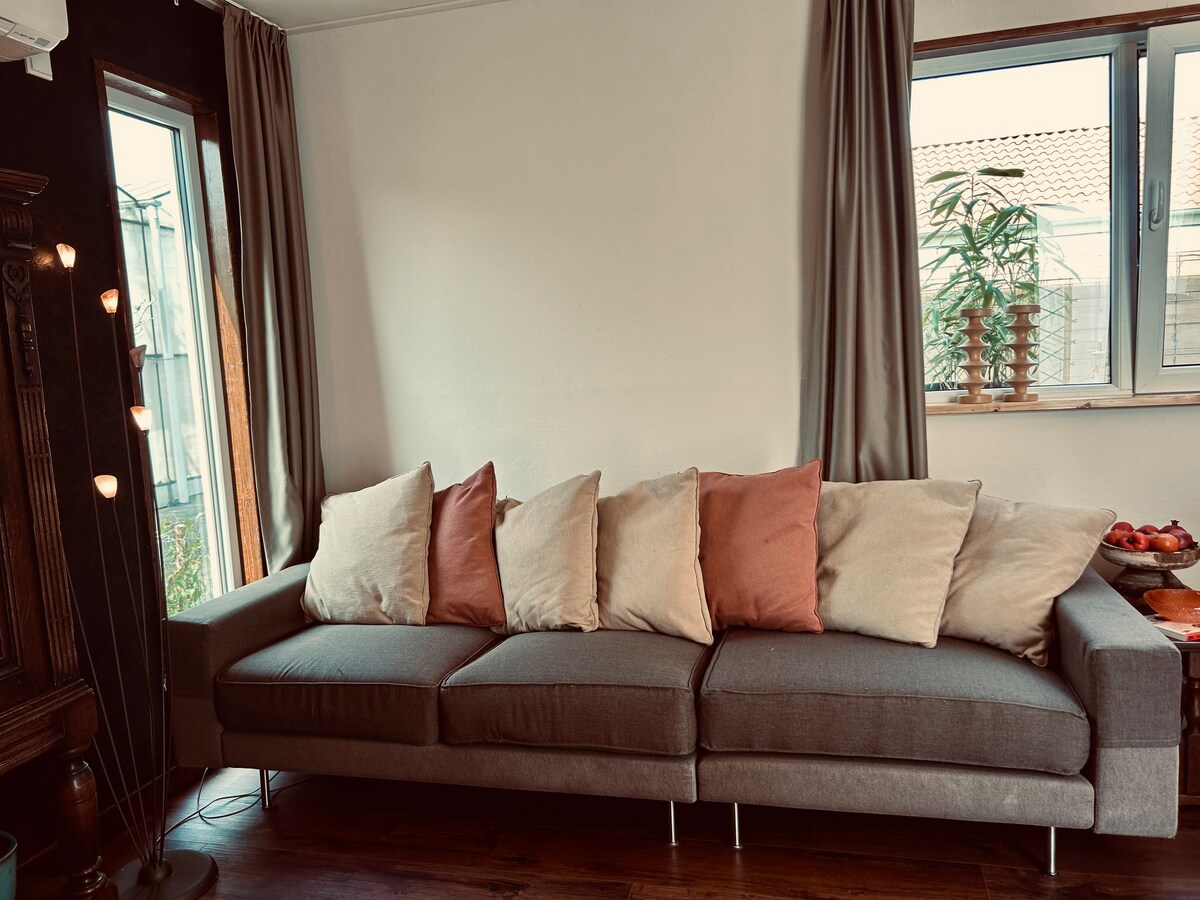 Šī burvīgā un mājīgā naktsmītne ar stilīgu interjeru atrodas centrālā vietā starp Amsterdamu, Roterdamu, Hāgu, Leidenu un pludmali. Viss 30 minūšu brauciena attālumā. Ir atsevišķa ieeja. Ieeja ir pirmajā stāvā. Šeit ir atsevišķa tualete, atsevišķa vannasistaba un veļasmašīna. Augšstāvā ir divas istabas, guļamistaba ar plakanā ekrāna televizoru (Netflix un YouTube), brokastu/darba istaba un drēbju skapis. Koridorā atrodas cepeškrāsns/mikroviļņu krāsns, Nespresso kafijas automāts, tējkanna un ledusskapis.