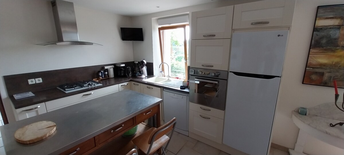 Apburoša Bretaņas lauku māja ir pilnībā atjaunota, apvienojot akmens raksturu ar modernu komfortu. Tas atrodas 4 hektāru īpašuma sirdī ar staļļiem un piedāvā mierīgu un eksotisku vidi. Mājā ir 3 guļamistabas, vannasistaba ar dušu, pilnībā aprīkota virtuve, un tajā var ērti uzturēties līdz 6 cilvēkiem. Ideāli piemērots pārim, kas meklē mieru, kā arī ģimenei ar bērniem. 5 min līdz visiem veikaliem un 30 min līdz pludmalēm (Côte de Granit)