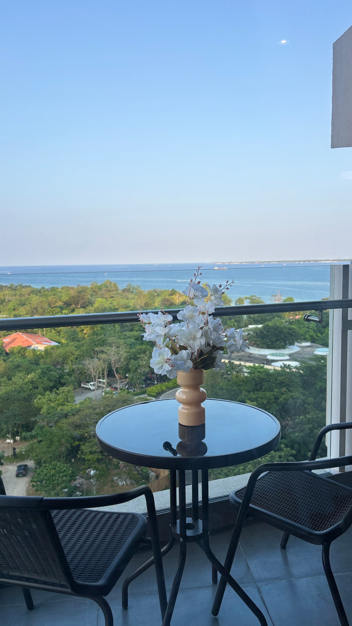 Izbaudiet mūsu moderno 37 m² lielās augstākās klases studijas tipa dzīvokli “Tambuli Resort” C torņa 12. stāvā! Atpūtieties privātajā balkonā ar brīnišķīgu skatu uz jūru. Ideāli piemērota līdz 4 viesiem (1 divguļamā gulta, 1 divguļamais dīvāngulta). Ir īpaši ātrs 300 Mb/s Wi-Fi, viedtelevizors ar bezmaksas Netflix un pilnībā aprīkota virtuve ar kafijas automātu un bezmaksas ūdens automātu. Viesiem ir bezmaksas piekļuve torņa A/B baseinam, un pēc izvēles ir pieejamas dienas caurlaides privātajai pludmalei un pieciem galvenajiem kūrorta baseiniem. Rezervējiet atpūtu tropos jau šodien!