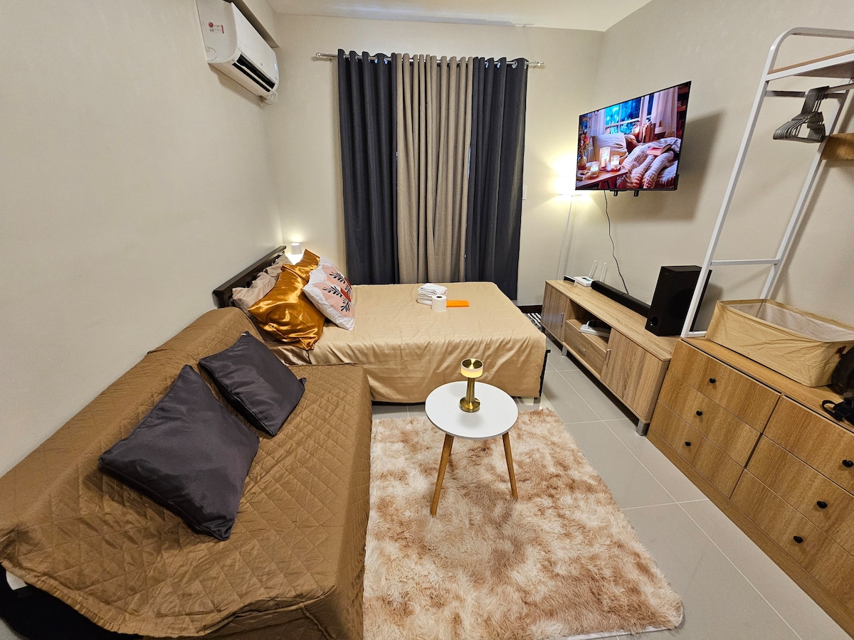 Jūsu mājoklis ārpus mājām. Mājīga, eleganta, bet budžetam draudzīga vieta, kur varat ietriekties atvaļinājumā! 💛 Aprīkojums un papildērtības: ● pilnībā mēbelēts ● Pilnībā aprīkots virtuves aprīkojums un piederumi ● Ātrgaitas Wi-Fi ● Gaisa kondicionētājs● 55' plakanā ekrāna televizors un Netflix gatavs ● Karsta un auksta duša ● Sporta zāles ● baseins ● Studijas apgabala atrašanās vieta: Tieši Sebu pilsētas sirdī! ● 8 minūšu attālumā no Ajalas, Cebu biznesa parka ● 10 minūšu attālumā no IT parka ● 15 minūšu attālumā no pilsētas Colon ● Ērta piekļuve tūristu vietām