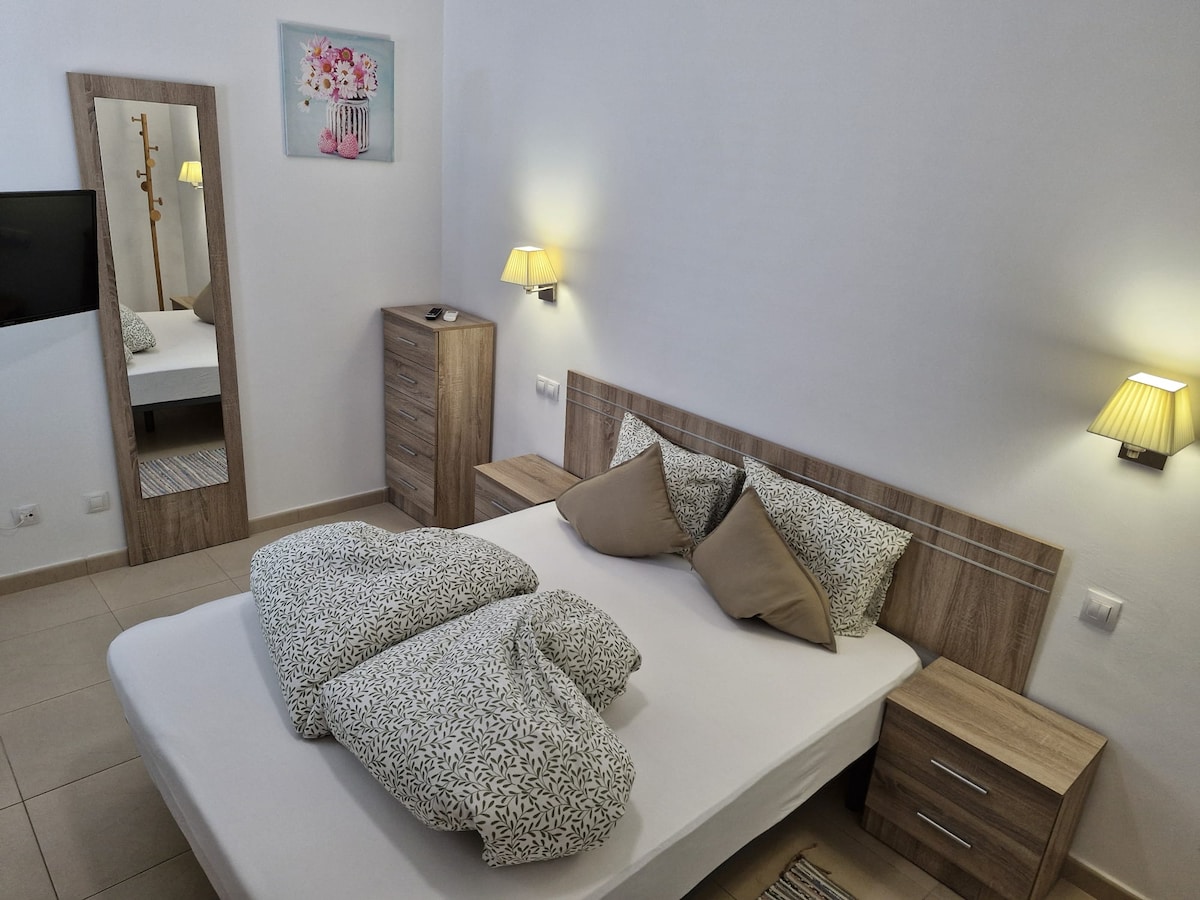 Apartamento acogedor y tranquilo donde podrás disfrutar de las mejores vistas al mar mientras desayunas, comes o cenas en nuestra espaciosa terraza, desde allí verás las puestas de sol más alucinantes de la isla y los amaneceres más bonitos. También podrás refrescarte en las dos piscinas ( infantil y adultos) o usar el solárium con tumbonas del complejo mientras degustas unas deliciosas tapas y una copa de vino en el bar piscina. ¡El sitio perfecto para relajarte y crear recuerdos inolvidables!