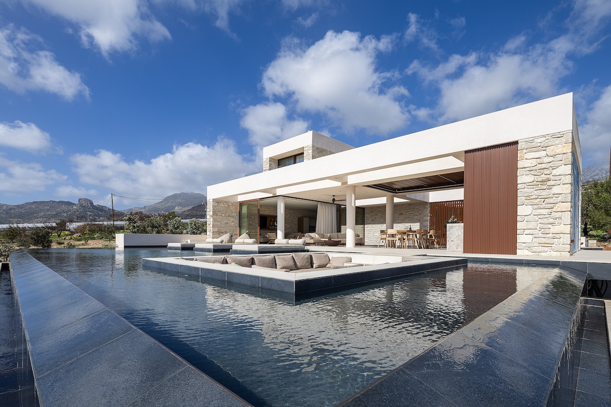 Laipni lūdzam mūsu privātajā villā ar privātu baseinu un sporta zāli. Tā piedāvā miera un greznības ostu, kas atrodas tikai 15 minūšu brauciena attālumā no Heraklionas pilsētas. Izbaudiet panorāmas skatu uz majestātiskajiem kalniem un jūru no katra villas stūra. Neatkarīgi no tā, vai atpūšaties pie baseina vai malkojat rīta kafiju terasē, ainava jūs sajūsminās. Villa piedāvā modernu papildērtību un dabas skaistuma apvienojumu, nodrošinot neaizmirstamu uzturēšanos jums un jūsu mīļajiem.