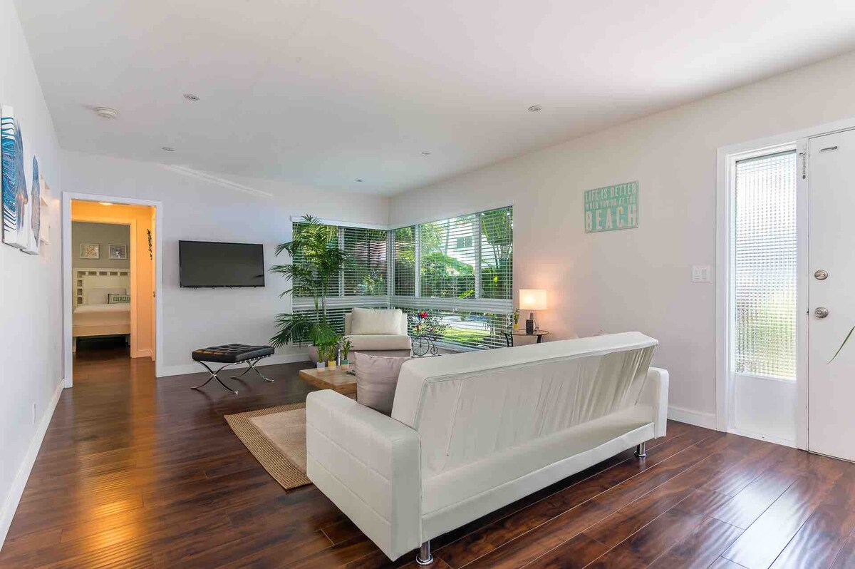 Laipni lūdzam Villa Blanca - gaišā un gaisīgā studijā, kas piedāvā plīša mēbeles un augstas kvalitātes papildērtības. Šis apslēptais dārgakmens, kas rūpīgi veidots ar koka grīdām, stilīgu apdari un krāsu akcentiem, varētu būt jūsu. Populārākie 5% mājokļi. ♥ Veļasmašīna un žāvētājs ♥ 15 min līdz FLL lidostai, Port Everglades, Hard Rock kazino un Chase stadionam ♥ 10 min līdz pilsētas centram/restorāniem/pludmalei ♥ Privāta ieeja un individuālā reģistrēšanās ♥ Bezmaksas autostāvvieta ārpus ielas ♥ WFH gatavs ♥ Pludmales krēsli un dvieļi
