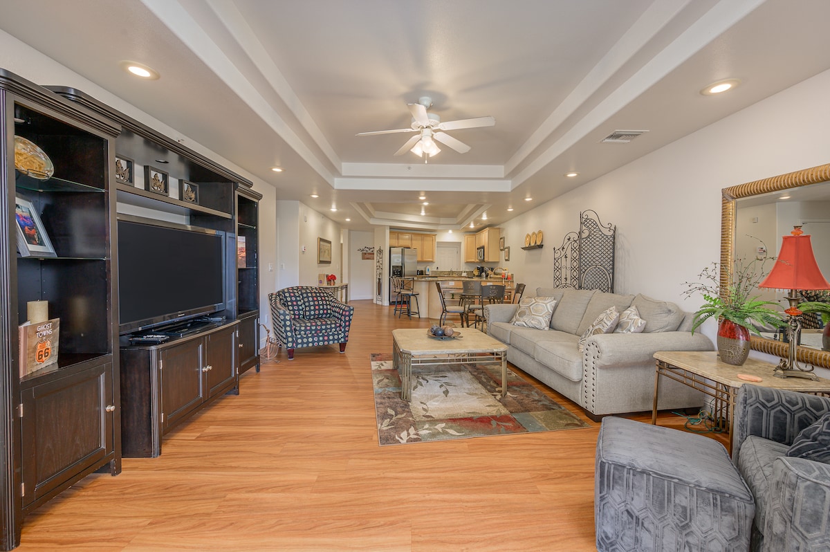 Enjoy a perfect river getaway at our dog-friendly condo in Bullhead City, AZ. Condo includes a private community boat launch, a heated pool & a relaxing spa. Ideally located for river fun, bring your boat/jet ski (see other notes) & enjoy easy access to the water & nearby amenities. 🎰 Laughlin, NV, is a short 10 min drive. 🚤 Lake Mohave is a short 15 min drive. ☕️ Starbucks - across the street! 🛒 Groceries, 🛝 parks, 🎥🎳 entertainment - all close by! TPT: 21616545 | STR: 540364