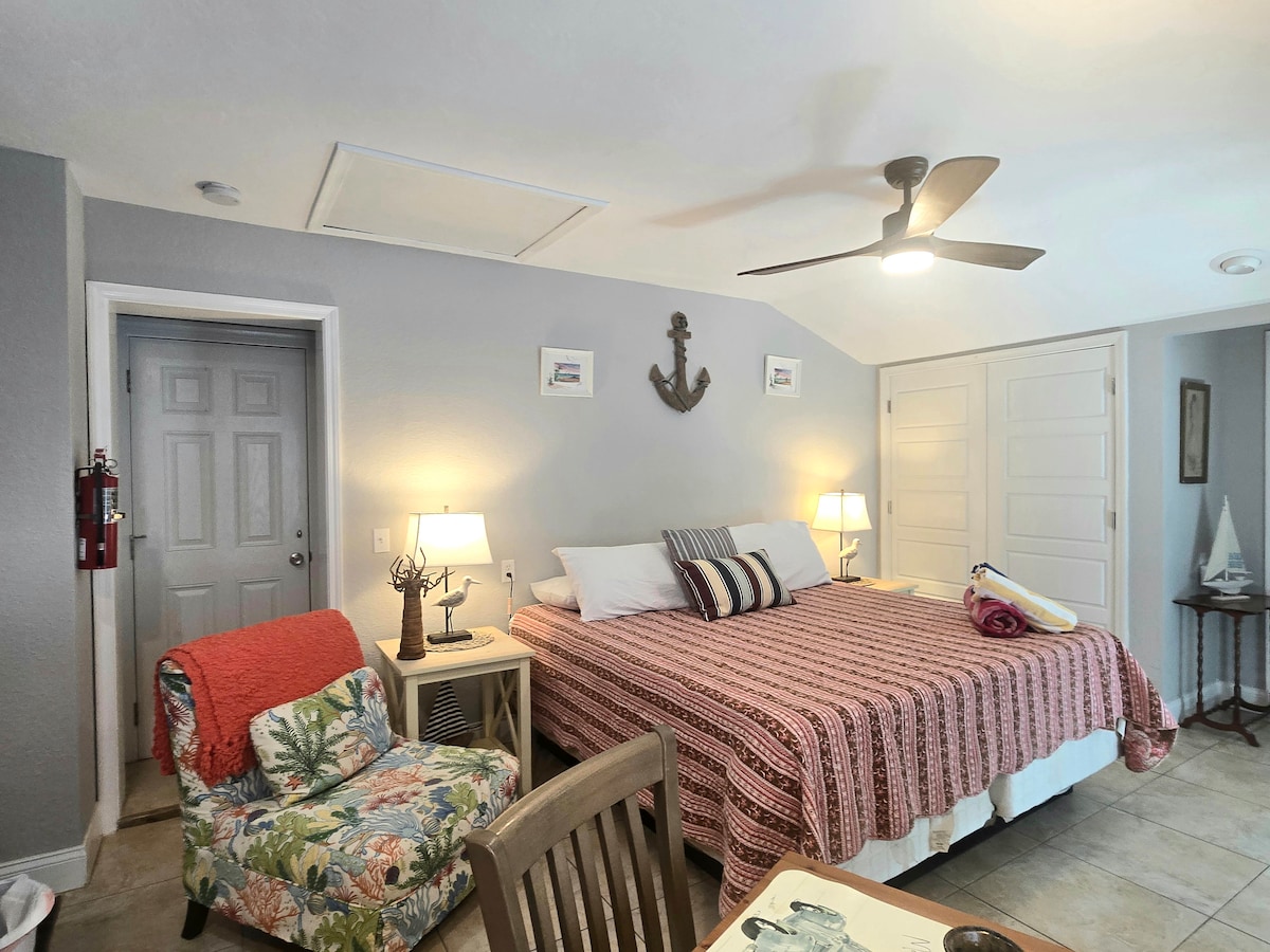 Krodziņš atrodas ērtā vietā Siesta Key tieši pāri ielai no pludmales. Tās viesiem ir piekļuve pludmalei pa visu ceļu (9. piekļuve). Arī Siesta Village atrodas tikai 5 minūšu pastaigas attālumā no krodziņa. Ja pastaiga nav iespēja, ir ratiņi, kas ir bez maksas, lai brauktu un apbrauktu atslēgu. Kopā mums ir 6 atsevišķas kotedžas - no vienas guļamistabas līdz trīs guļamistabu vienībām.