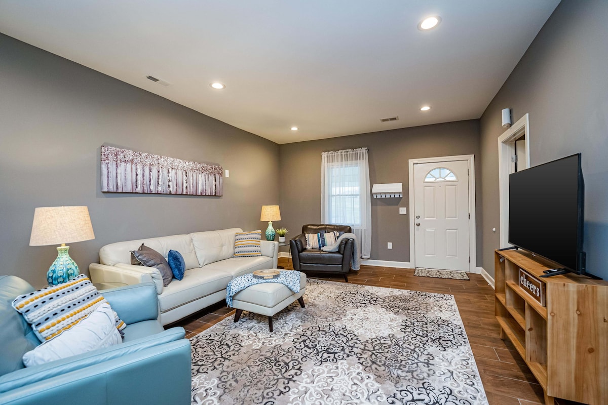 Atslābinieties un atpūtieties šajā mierīgajā, stilīgajā mājoklī. Pastaigas attālums līdz kafijas bāram un krānam, restorāniem, SPA un iepirkšanās rosīgajā dienvidu burvīgajā Laurensas centrā, SC. Šī 2 guļamistabu/2 vannasistabu virtuve ir labi aprīkota ar flīžu apkārtni vannās, ādas mēbelēm, viedo televizoru koplietošanas telpā un pilnībā aprīkotu virtuvi. Atpūtieties priekšējā lievenī tikai 1 kvartāla attālumā no Laurensas vēsturiskā laukuma!