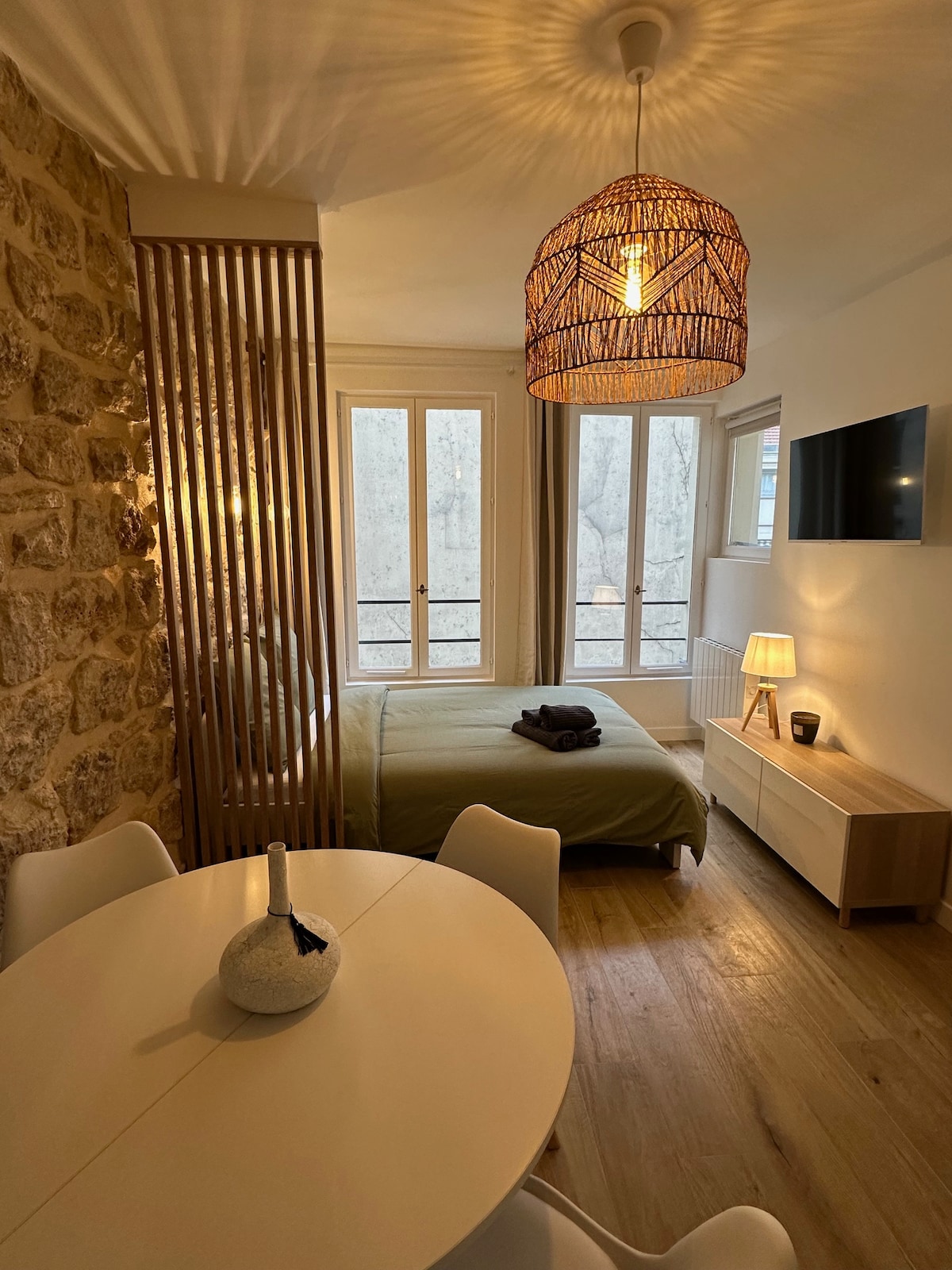 Dzīvoklis Le Haut Marais ar skatu uz Temple laukumu Mūsdienīgs dekors, gaismas pilna telpa, 3,80 m augsti griesti. Jūs esat pavisam netālu no daudzām dažādām metro līnijām : République, Arts et Métiers vai Temple atrodas tikai 2 minūšu attālumā. Šis dzīvoklis tiek tīrīts un dezinficēts ar ekoloģisku tvaika tīrīšanas šķīdumu, kas ir sertificēts tā baktericīdo, fungicīdo un virucīdo īpašību dēļ. .