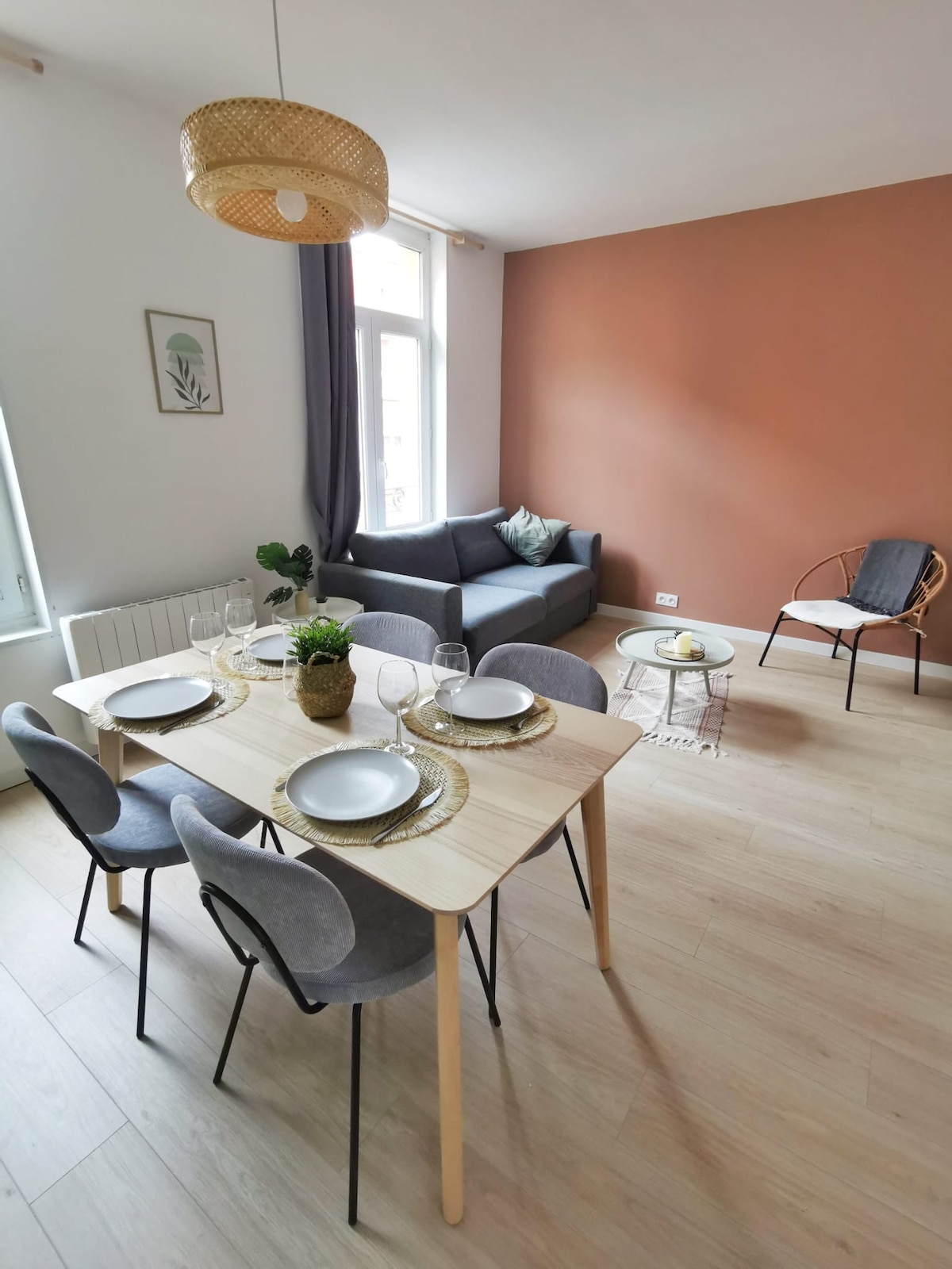 In a touristic and dynamic area, discover this exceptional modern, comfortable, bright and spacious triplex apartment which offers all the joys of visiting the city of Lens (3-4 minutes by car). Ideal location: shops and restaurants are accessible on foot at only 1 km. The Bollaert stadium is only a 15-minute walk away, ideal for going to a soccer match!