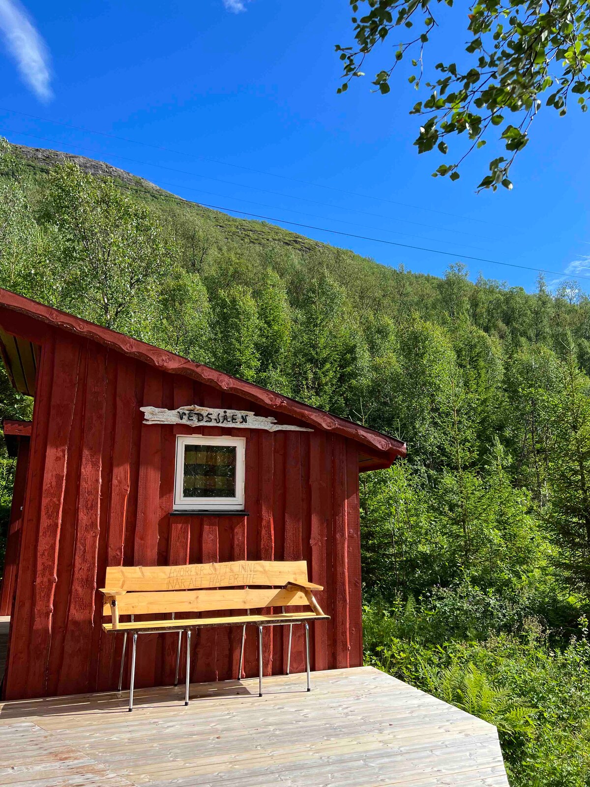 ENGLISH: Cozy and modern mini-house with most amenities and stunning views. Well located on a hill near the sea in a quiet area where only the host's residence and a holiday cabin are neighbors. 12 km from the trail to Segla/Hesten. Practical info in the cabin. NORSK: Koselig og moderne minihus med de fleste fasiliteter og fin utsikt. Godt plassert på høyde nær sjøen i et rolig område hvor kun vertsboligen og en feriehytte er nabo. 12 km fra stien til Segla/Hesten. Praktisk info i hytta.