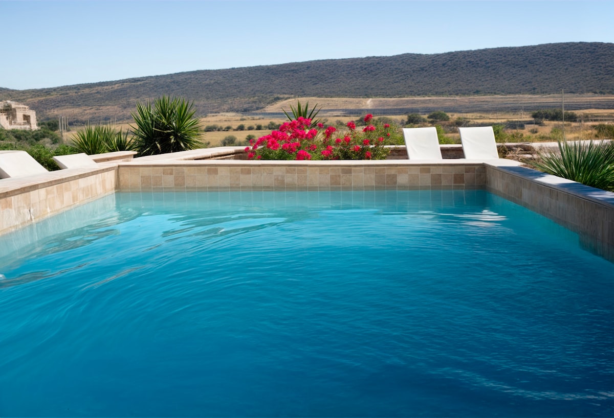Izvairieties no pilsētas un izbaudiet Leona ideālos laikapstākļus mūsu 6 cilvēku koloniālajā villā. Tiek kurināts sulīgs, privāts oāze iežogots pagalms ar āra viesistabas komplektu un grilu. Atrodiet mirdzošo saules paneļu apsildāmo privāto baseinu pie durvīm. Villas ķieģeļu velves griesti uztur atmosfēru vēsu visu gadu. Villā ir 2 istabas ar 2 gultām, tāpēc tā ir lieliski piemērota pāriem un ģimenēm, un pēc pieprasījuma ir atļauti papildu cilvēki. Ballītes nav atļautas, kaimiņi ir jutīgi pret troksni.