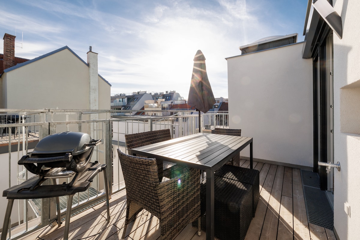 Luxe Vīnes dzīvoklis ar skatu uz pilsētu |Jumta terase