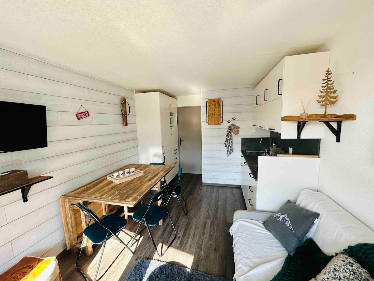 Pilnībā atjaunots 25 m2 dzīvoklis pie slēpošanas trases, kas ideāli piemērots 4 cilvēkiem ar satriecošu skatu uz kalniem. Autostāvvieta AUX Bergers 1 piešķirtā vieta Atpakaļ uz slēpošanu: pagrabstāvā ir pieejams skapis. Tuvu veikaliem ( starpmārkets, slēpju noma...) Kalnu stūris ar divstāvīgām gultām. 160x200 dīvāngulta. Pilnībā aprīkota virtuve, vannasistaba un atsevišķa tualete Ja vēlaties, ir pieejama gultasveļa Mīļdzīvnieki nav atļauti. Klusa dzīvesvietas cieņa pret citiem.