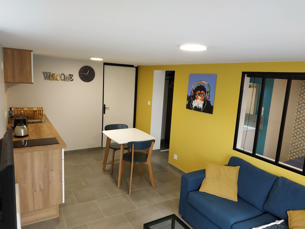 Jauns dzīvoklis blakus mūsu mājai, kas atrodas trīs km attālumā no Puy du Fou . Ļoti klusā vietā. 36 m jūsu rīcībā ir virtuve, guļamistaba un vannasistaba, kas atrodas augšstāvā. Jums būs arī privāts dārza stūrītis. Netālu no Intermarché 100m. WI FI . 160/200 gultas veļas mašīna, žāvētājs, autostāvvieta.