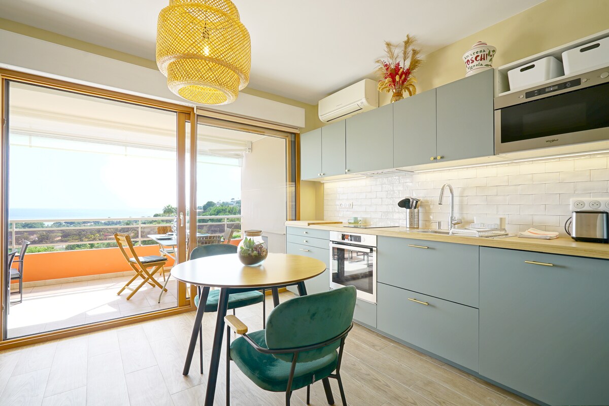 F2 tipa dzīvoklis ar skatu uz jūru. 1 guļamistaba + jauns un ļoti ērts kabriolets. Mēbelēta virtuve. Lifts. Autobusa pietura netālu. Bezmaksas autostāvvieta. 5 minūšu attālumā no pludmales. Pilsētas ieeja netālu no lidostas (bet ne lidmašīnu pārejā) un pilsētas centra. Veikali tuvumā. (Aptieka, maiznīca, ēdināšanas uzņēmumi...) reģistrācijas numurs (2A0040001740F)