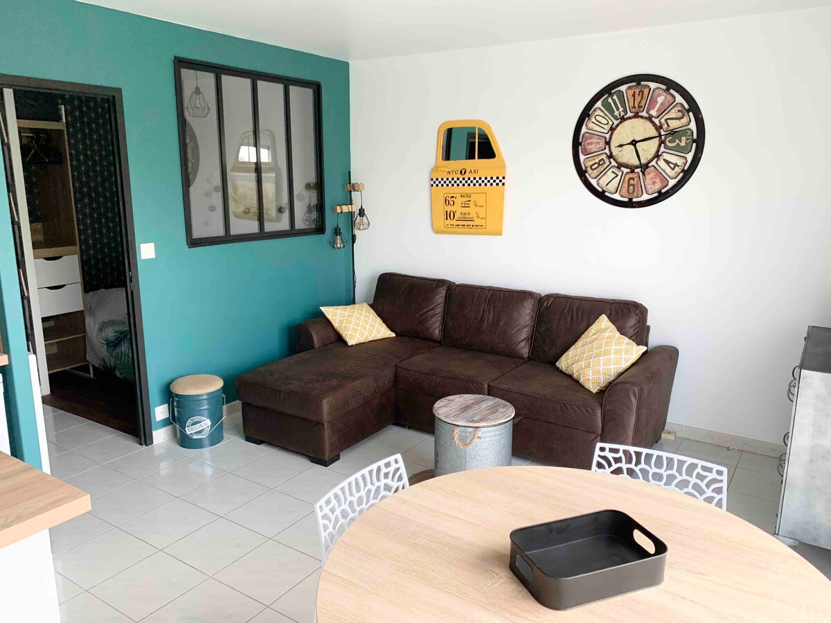 Dzīvoklis T1 bis gaišs 35 m² tt komforts Pirmā stāva droša dzīvesvieta 4 cilvēki, ieskaitot 2 gultas BZ viesistabā, kluss visu papildērtību tuvumā 1 ieeja 1 sj sal 1 BZ par 2 uz 1 TV 1 minivirtuvē aprīkota mikroviļņu krāsns ledusskapis, tējkanna, kafijas automāts, tosteris, trauku mazgājamā mašīna, nepieciešama 1 ch 1 gulta 140 1 skapis SE 1 veļas mašīna 1 atsevišķa tualete 1 iežogots pagalms, kas nav vērsts uz atklātu E lounge dārza sauļošanās gultām, 1 gar pagraba standarta bezmaksas āra autostāvvieta. Cenas atkarībā no sezonas NESMĒĶĒJIET, NESMĒĶĒJIET.