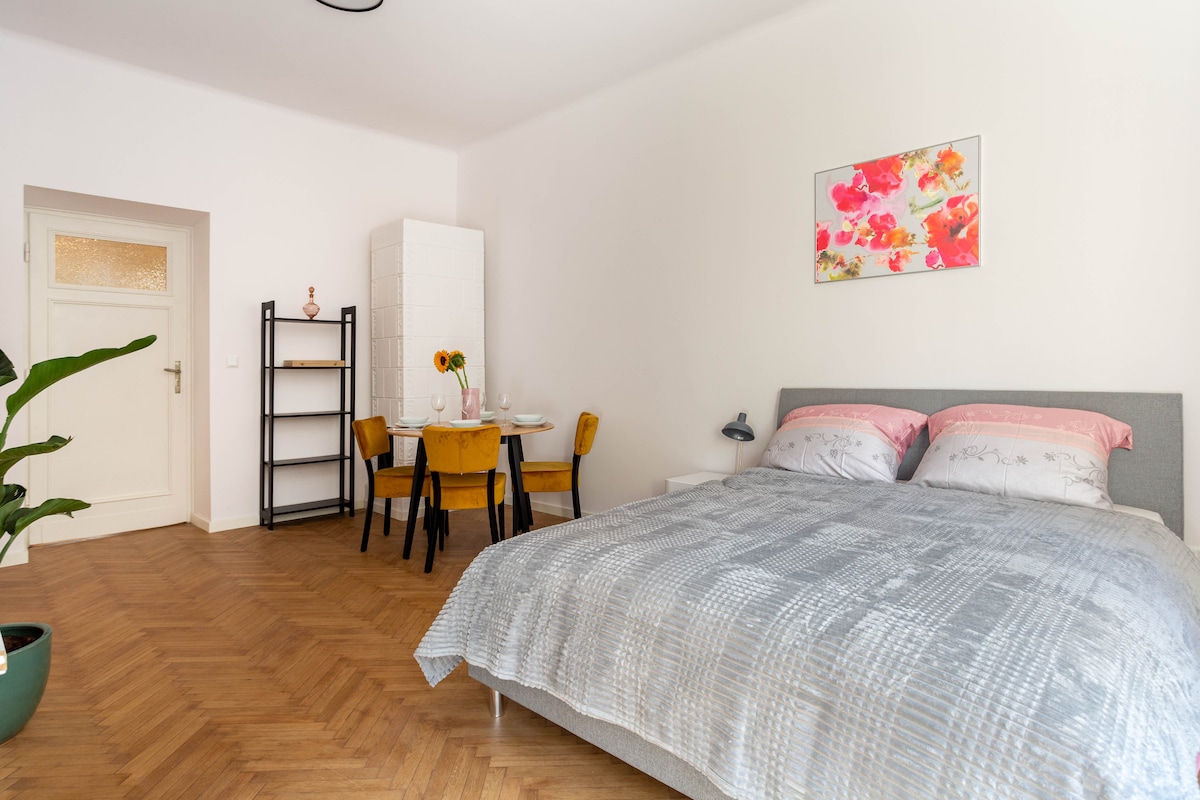 Open the lush floor-to-ceiling drapes to look out onto a cityscape that's barely changed in well over a century. On the left, you'll see the medieval gothic towers of the St. Mary's Basilica from where the famous trumpet call is played. This bright, stately studio features chic furnishings and stylish pieces of modern art. Situated next to the Market Square, it is the best place to explore the city's rich history.