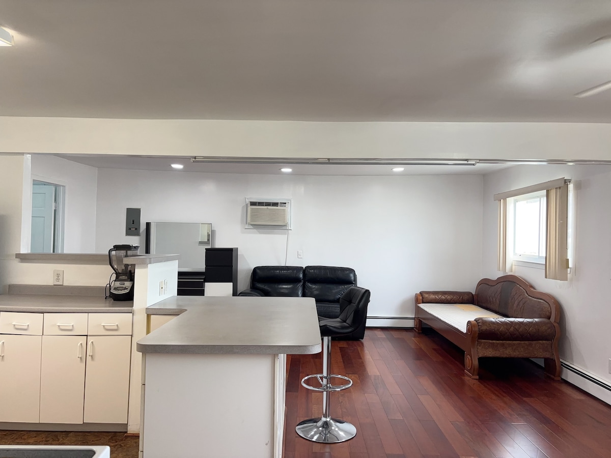 Šī augšstāva studija atrodas pašā Longailendas sirdī. Jūs atradīsiet dvieļus, palagus, pilnu virtuvi ar traukiem un galda piederumiem. Ledusskapja blokā ir pilna izmēra saldētava un ledusskapis. Cepeškrāsns ir elektriska un pilna izmēra. Ir rakstāmgalda zona ar Wi-Fi. Man ir Verizon serviss. Tajā ir arī Vizio viedtelevīzija. Ir bezmaksas stāvvieta uz ielas. Klusais laiks ir no plkst. 22: 00 līdz plkst. 7:00. Skaļi soļi un televīzija, skriešana, lēkšana un sarunas traucē maniem viesiem zemāk.
