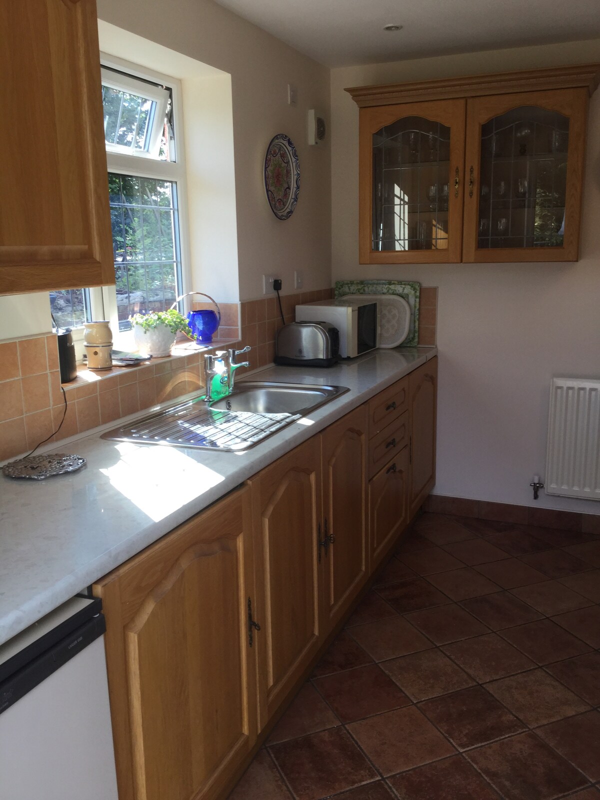 You will be comfortable in our house, full of character. Two upstairs bedrooms, with a king size bed & Freeview TV, plus one with single (further beds on discussion); bathroom upstairs and downstairs shower room. Downstairs sitting room with Wi-Fi TV, microwave, toaster, kettle and fridge (no freezer), without a kitchen sink. Washing up service provided. This is all for your private use with your own front door, in effect a self contained unit.